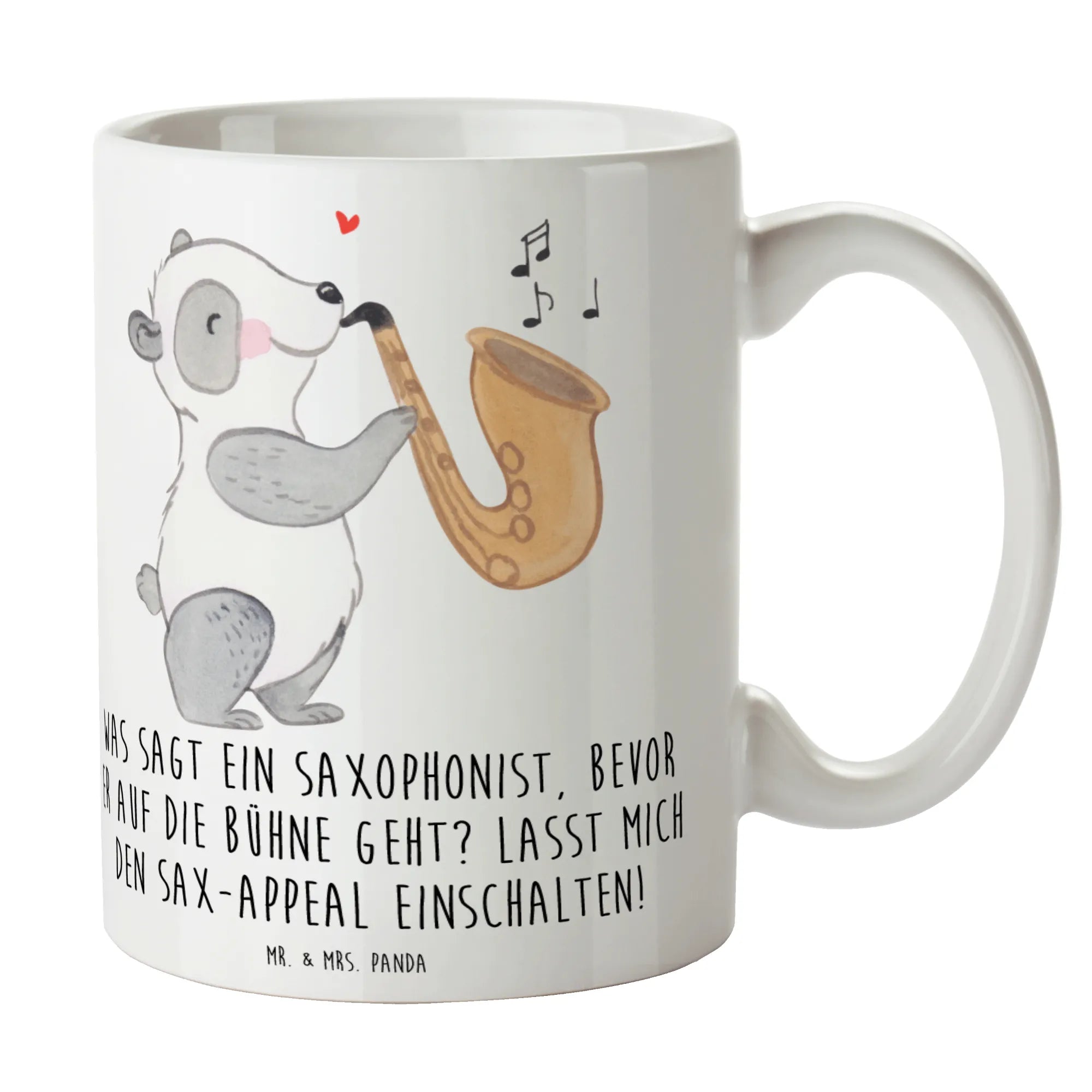 Die wunderschöne Kaffeetasse von Mr. & Mrs. Panda mit dem einzigartigen Saxophon-Motiv aus der Kollektion Musizieren & Instrumente ist das perfekte Geschenk für alle Musikliebhaber und Saxophonisten. Ob zur Feier eines besonderen Anlasses oder als liebevolles Dankeschön – diese Tasse bringt ein Lächeln in jedes Gesicht!