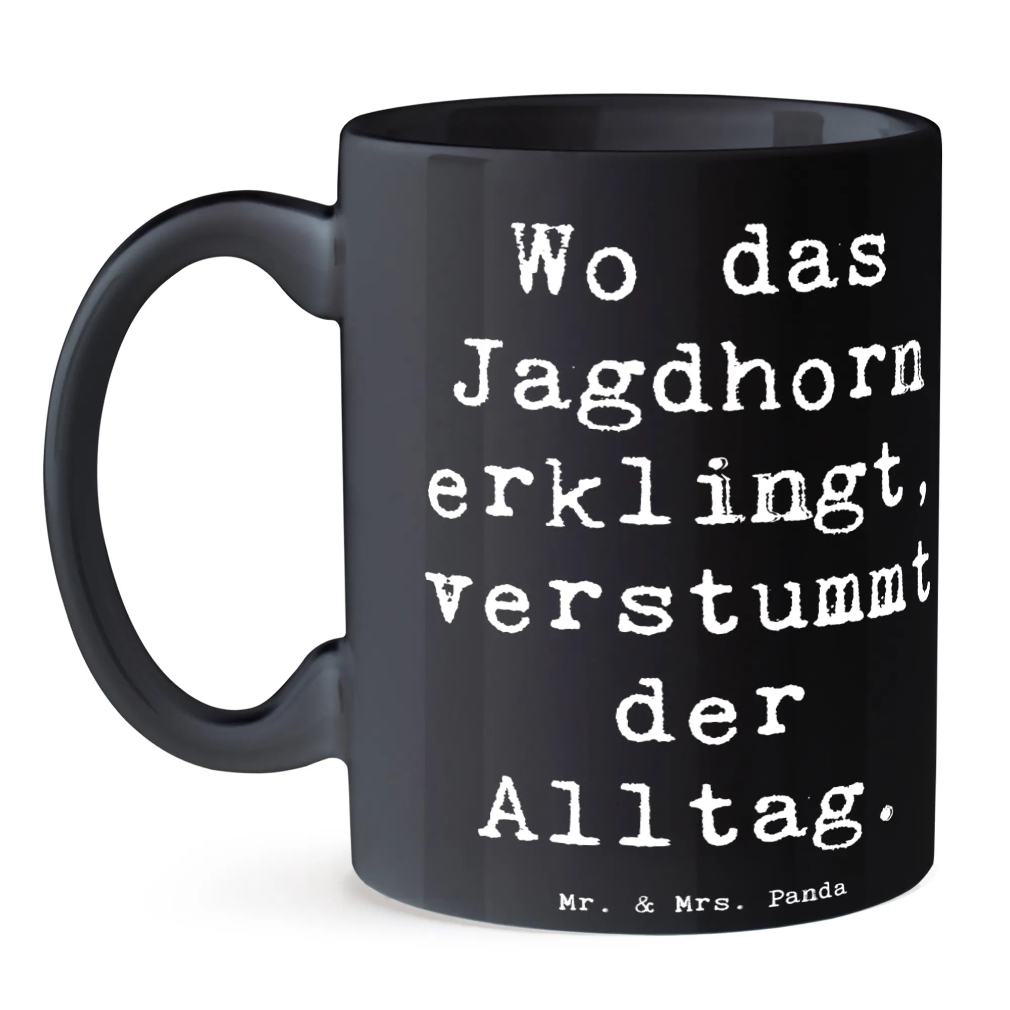 Der eingängige Spruch 'Wo das Jagdhorn erklingt, verstummt der Alltag.' spricht die Herzen derer an, die die ruhigen Klänge der Natur und die Tradition des Jägerhandwerks schätzen. Hergestellt aus hochwertiger Keramik, eignet sich die Tasse nicht nur für Kaffee und Tee, sondern auch für die gemütlichen Pausen im Büro.