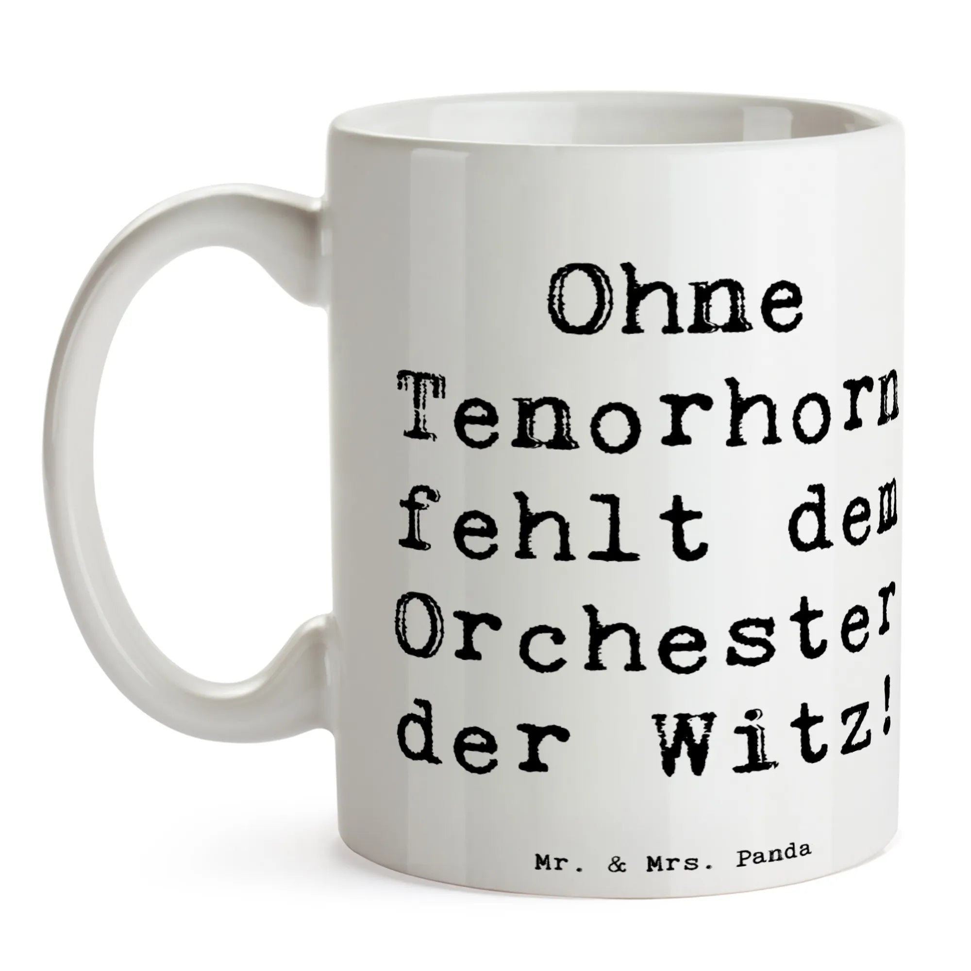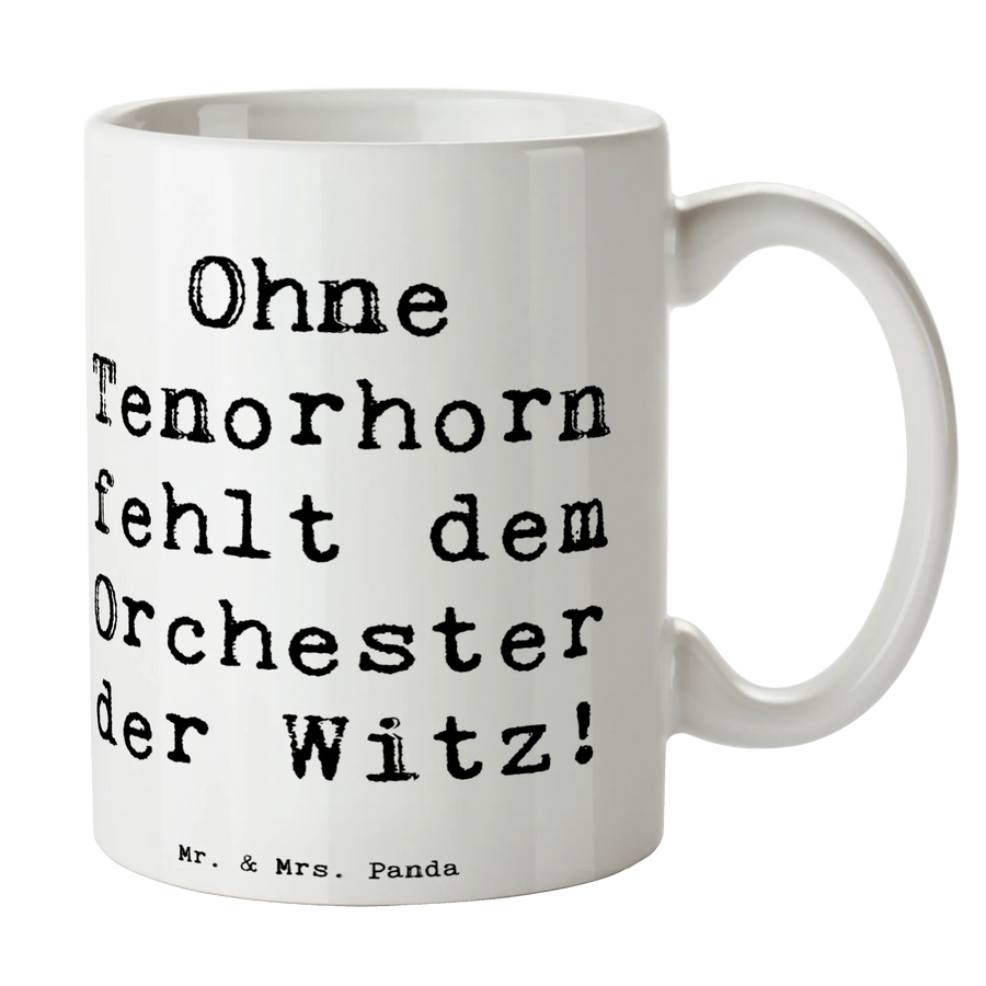 Suchst du ein Geschenk, das Herz und Humor verbindet? Unsere Mr. & Mrs. Panda Kaffeetasse mit Tenorhorn-Motiv trifft genau ins Schwarze. Mit dem witzigen Spruch „Ohne Tenorhorn fehlt dem Orchester der Witz!“ zauberst du jedem Tenorhorn-Spieler, Mitglied einer Brassband oder Blaskapelle ein Lächeln ins Gesicht. 🎺