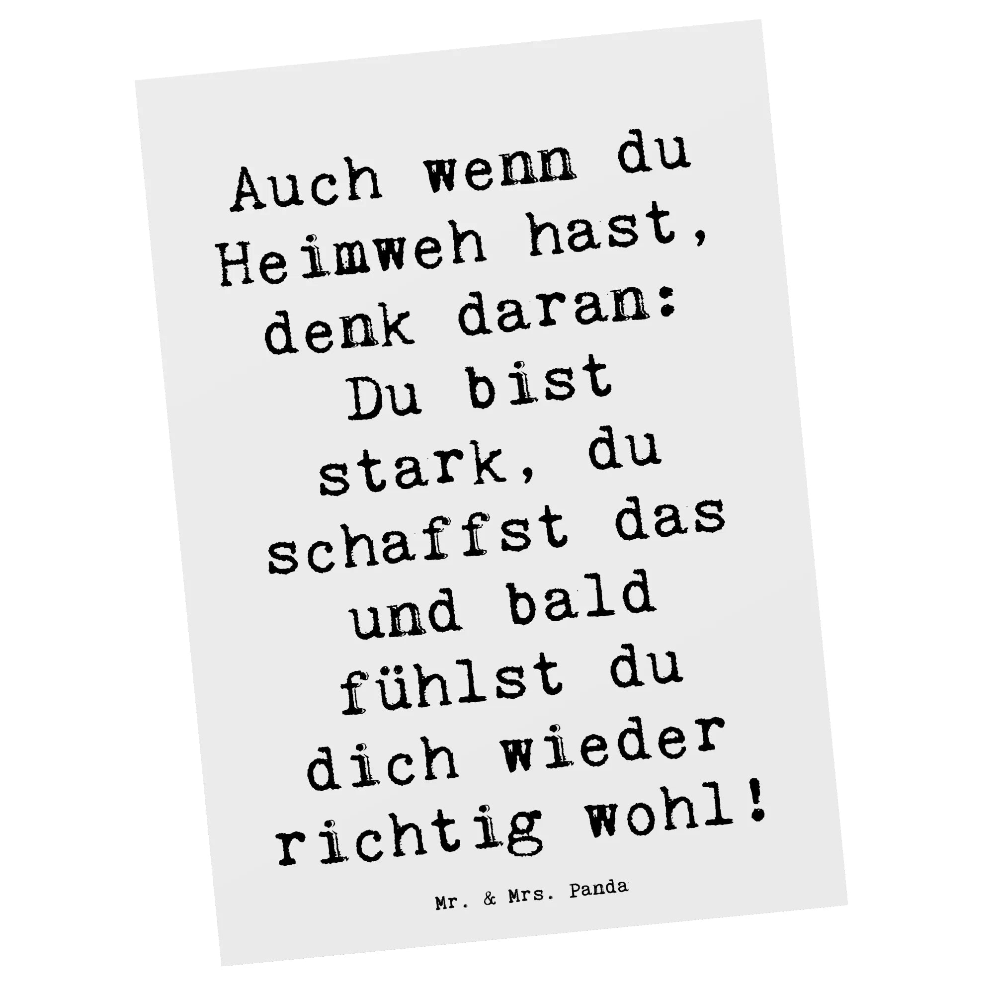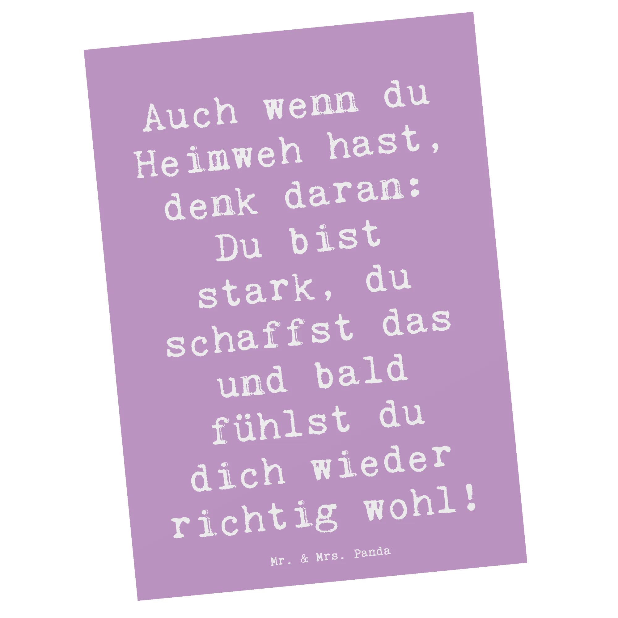 Die Postkarte "Heimweh überwinden" aus der Kollektion Mutmacher von Mr. & Mrs. Panda ist das perfekte Geschenk für all jene, die sich nach der vertrauten Umgebung sehnen und vielleicht gerade eine Phase der Unsicherheit durchleben. Ob deine beste Freundin, die gerade in einer neuen Stadt wohnt, oder dein Bruder, der für sein Studium ins Ausland gegangen ist – diese Karte bietet die richtige Botschaft zur richtigen Zeit! Mit dem inspirierenden Spruch: "Auch wenn du Heimweh hast, denk daran: Du bist stark, du schaffst das und bald fühlst du dich wieder richtig wohl!" versprühst du Zuversicht und Trost.