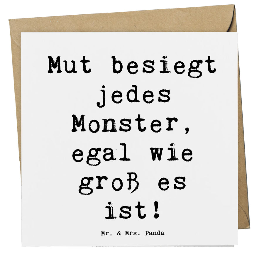 Die Deluxe Karte 'Ängste vor Monstern besiegen' aus der einzigartigen Mutmacher-Kollektion von Mr. & Mrs. Panda ist das perfekte Geschenk für alle, die ein bisschen Mut und Zuversicht brauchen. Egal ob für einen Geburtstag, eine Hochzeit oder einfach nur als kleine Aufmerksamkeit für einen geliebten Menschen – diese hochwertige Klappkarte ist der ideale Begleiter in schweren Zeiten. Sie kommt mit dem inspirierenden Spruch 'Mut besiegt jedes Monster, egal wie groß es ist!', der nicht nur Trost spendet, sondern auch neuen Lebensmut gibt.