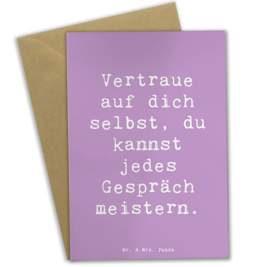Die Grußkarte 'Ein schwieriges Gespräch führen' aus der Kollektion Mutmacher von Mr. & Mrs. Panda ist das perfekte Geschenk für viele Gelegenheiten. Manchmal stehen wir vor Herausforderungen, die uns nervös machen und uns nicht schlafen lassen. Genau in solchen Momenten kann eine liebevolle Botschaft so viel bewirken! Diese einzigartige Karte ist mit dem aufmunternden Spruch 'Vertraue auf dich selbst, du kannst jedes Gespräch meistern.' bedruckt. Sie ist ideal, um jemandem Mut zuzusprechen, der sich auf ein bedeutendes Gespräch vorbereitet.