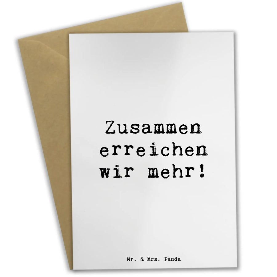Im Team zusammenarbeiten – die charmante Grußkarte aus der Mutmacher-Kollektion von Mr. & Mrs. Panda. Mit dem inspirierenden Slogan „Zusammen erreichen wir mehr!“ auf der Vorderseite ist diese Karte ein perfektes Zeichen für Teamgeist, Motivation und Wertschätzung. 🎉