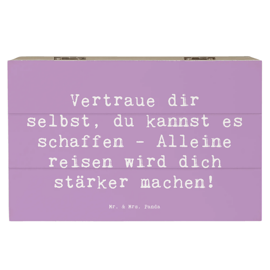 Entdecke die zauberhafte Holzkiste "Alleine Reisen unternehmen" aus der Mutmacher-Kollektion von Mr. & Mrs. Panda! Diese wundervolle Erinnerungskiste ist nicht nur ein schöner Aufbewahrungsort für deine wertvollsten Schätze, sondern auch eine Quelle der Inspiration und des Trostes.