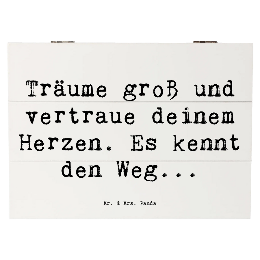 Das einzigartige Design besticht durch seine Einschlagscharniere, die ein einfaches Öffnen und Schließen ermöglichen. Damit ist diese Kiste perfekt geeignet, um die schönsten Momente des Lebens gut aufzubewahren. Der Spruch "Träume groß und vertraue deinem Herzen. Es kennt den Weg..." wird nicht nur zu einem Mantra, sondern zu einer Quelle der Inspiration für dich und deine Liebsten.