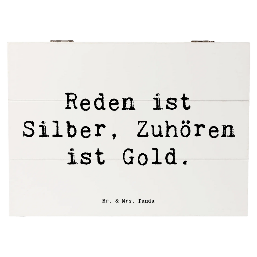 Die Botschaft "Reden ist Silber, Zuhören ist Gold." ziert die Kiste und erinnert sowohl den Beschenkten als auch den Schenkenden daran, wie wichtig Verständnis und Kommunikation in jedem zwischenmenschlichen Verhältnis sind. Diese Kiste ist die perfekte Wahl für Menschen, die auf ein harmonisches Miteinander Wert legen und sich für friedliche Lösungen in Konfliktsituationen einsetzen möchten.