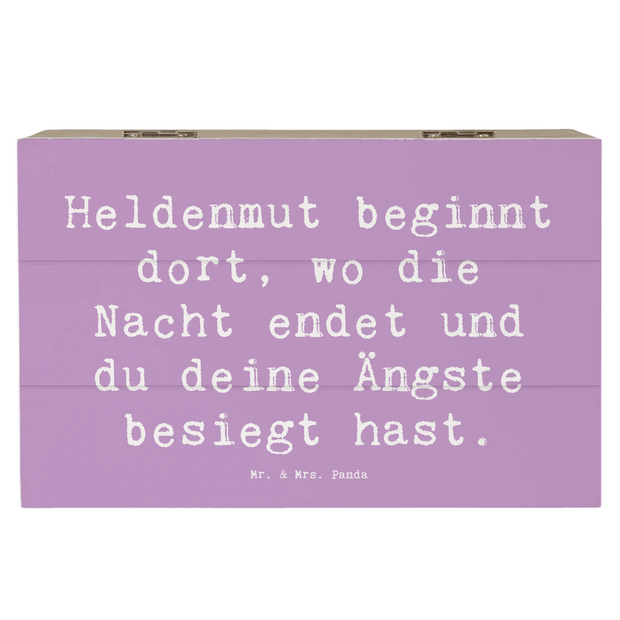 Eine wunderschöne Holzkiste von Mr. & Mrs. Panda – unser Mutmacher "Ängste vor Monstern besiegen" ist mehr als nur eine Kiste. Mit dem warmen Spruch Heldenmut beginnt dort, wo die Nacht endet und du deine Ängste besiegt hast. schenkt diese Holzkiste Trost, Zuversicht und ein kleines Stück Mut für Groß und Klein.