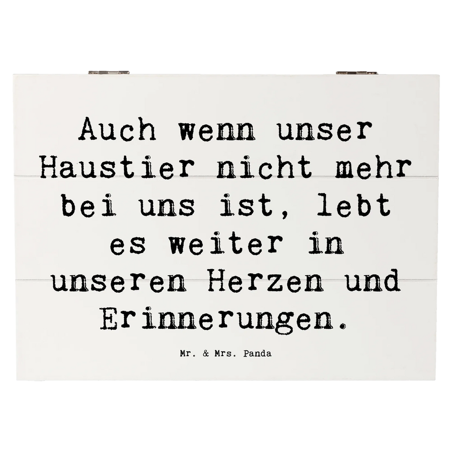 Die wunderschöne Holzkiste von Mr. & Mrs. Panda ist das perfekte Geschenk für alle, die den Verlust eines geliebten Haustieres verarbeiten möchten. Mit ihrem liebevollen Design und dem einfühlsamen Spruch 'Auch wenn unser Haustier nicht mehr bei uns ist, lebt es weiter in unseren Herzen und Erinnerungen.' bietet sie einen besonderen Ort zur Aufbewahrung von Erinnerungen und Schätzen, die uns mit unseren treuen Begleitern verbinden.
