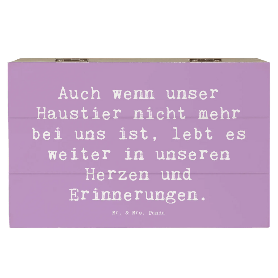 Die wunderschöne Holzkiste von Mr. & Mrs. Panda ist das perfekte Geschenk für alle, die den Verlust eines geliebten Haustieres verarbeiten möchten. Mit ihrem liebevollen Design und dem einfühlsamen Spruch 'Auch wenn unser Haustier nicht mehr bei uns ist, lebt es weiter in unseren Herzen und Erinnerungen.' bietet sie einen besonderen Ort zur Aufbewahrung von Erinnerungen und Schätzen, die uns mit unseren treuen Begleitern verbinden.