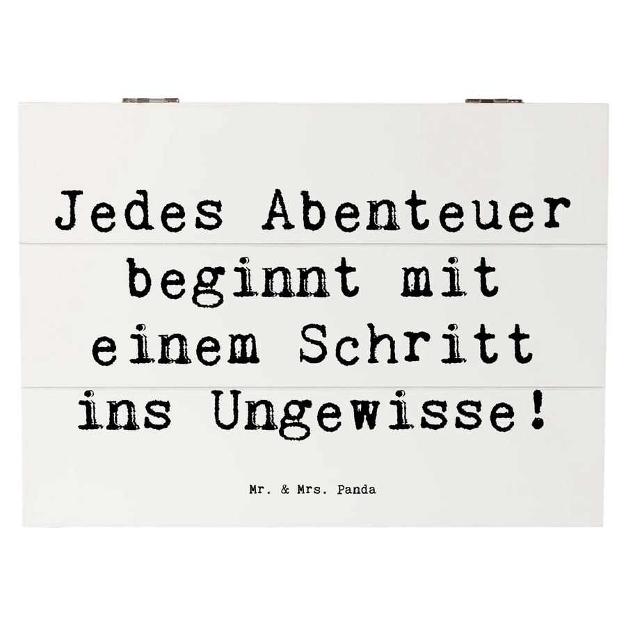 Die Holzkiste "Ungewissheit bei der Zukunftsplanung akzeptieren" aus der Mutmacher-Kollektion von Mr. & Mrs. Panda ist das perfekte Geschenk für alle, die sich in Zeiten der Unsicherheit und Veränderung nach Trost und Zuversicht sehnen. Mit ihrem ansprechenden Design und dem inspirierenden Spruch "Jedes Abenteuer beginnt mit einem Schritt ins Ungewisse!" ist sie mehr als nur eine Kiste – sie ist ein kleiner Mutmacher und ein kraftvolles Symbol für den Neuanfang.