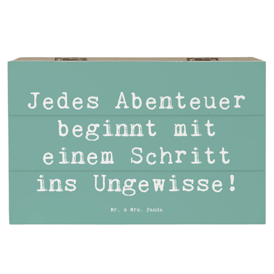 Die Holzkiste "Ungewissheit bei der Zukunftsplanung akzeptieren" aus der Mutmacher-Kollektion von Mr. & Mrs. Panda ist das perfekte Geschenk für alle, die sich in Zeiten der Unsicherheit und Veränderung nach Trost und Zuversicht sehnen. Mit ihrem ansprechenden Design und dem inspirierenden Spruch "Jedes Abenteuer beginnt mit einem Schritt ins Ungewisse!" ist sie mehr als nur eine Kiste – sie ist ein kleiner Mutmacher und ein kraftvolles Symbol für den Neuanfang.