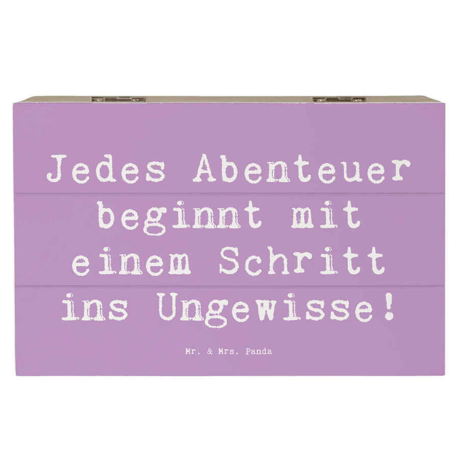 Die Holzkiste "Ungewissheit bei der Zukunftsplanung akzeptieren" aus der Mutmacher-Kollektion von Mr. & Mrs. Panda ist das perfekte Geschenk für alle, die sich in Zeiten der Unsicherheit und Veränderung nach Trost und Zuversicht sehnen. Mit ihrem ansprechenden Design und dem inspirierenden Spruch "Jedes Abenteuer beginnt mit einem Schritt ins Ungewisse!" ist sie mehr als nur eine Kiste – sie ist ein kleiner Mutmacher und ein kraftvolles Symbol für den Neuanfang.