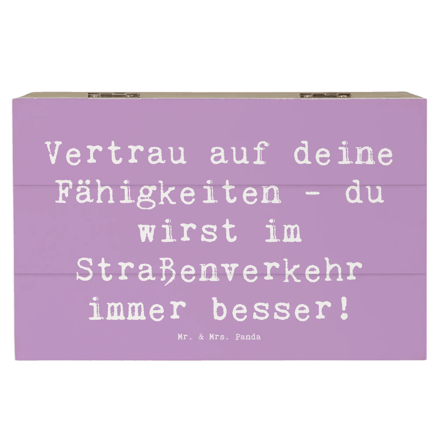 Die wunderschöne Holzkiste "Erste Erfahrungen im Straßenverkehr machen" aus der Mutmacher-Kollektion von Mr. & Mrs. Panda ist das perfekte Geschenk, um kleinen Abenteurern bei ihren ersten Fahrten Mut zu machen!