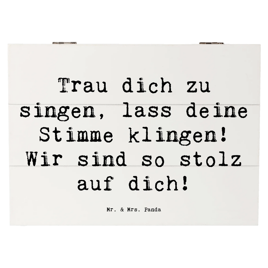 Die wunderschöne Holzkiste von Mr. & Mrs. Panda ist der perfekte Begleiter, um wertvolle Erinnerungen und Schätze zu bewahren. Mit dem inspirierenden Motto 'Trau dich zu singen, lass deine Stimme klingen! Wir sind so stolz auf dich!' aus der besonderen Kollektion Mutmacher, ist diese Schatzkiste ideal, um besondere Anlässe zu feiern oder einfach nur Liebe und Mut zu verschenken.
