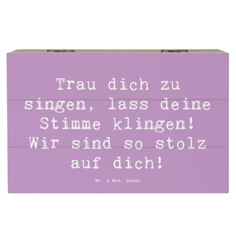 Die wunderschöne Holzkiste von Mr. & Mrs. Panda ist der perfekte Begleiter, um wertvolle Erinnerungen und Schätze zu bewahren. Mit dem inspirierenden Motto 'Trau dich zu singen, lass deine Stimme klingen! Wir sind so stolz auf dich!' aus der besonderen Kollektion Mutmacher, ist diese Schatzkiste ideal, um besondere Anlässe zu feiern oder einfach nur Liebe und Mut zu verschenken.