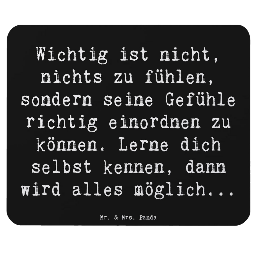 Dieses besondere Mauspad ist mehr als eine Computermatte: Es ist ein kleiner Mutmacher für deinen Schreibtisch. Der warme Spruch „Wichtig ist nicht, nichts zu fühlen, sondern seine Gefühle richtig einordnen zu können. Lerne dich selbst kennen, dann wird alles möglich...“ begleitet dich durch den Arbeitstag und erinnert liebevoll daran, auf dich selbst zu achten.