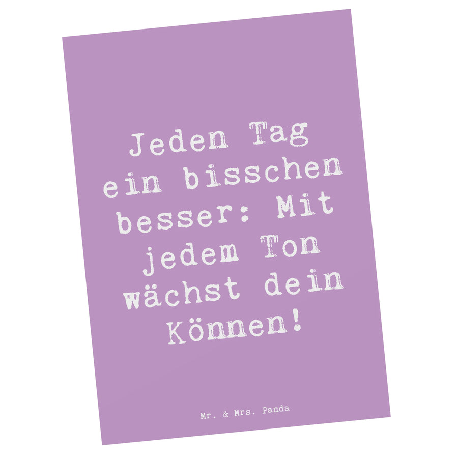 Diese einzigartige Postkarte ist nicht nur mit einem inspirierenden Spruch bedruckt – "Jeden Tag ein bisschen besser: Mit jedem Ton wächst dein Können!" –, sondern verbreitet auch positive Energie und ermutigt den Empfänger dazu, seine musikalischen Träume zu verwirklichen.