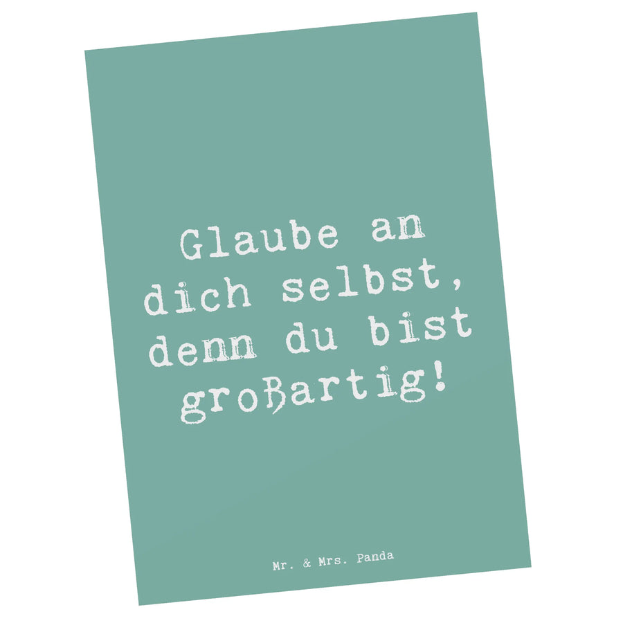 Eine kleine Karte. Eine große Botschaft. Unsere Postkarte „Glaube an dich selbst, denn du bist großartig!“ aus der Mutmacher-Kollektion von Mr. & Mrs. Panda ist die perfekte Grußkarte, wenn du jemandem Mut machen möchtest. Sie eignet sich wunderbar als Geschenkkarte, Dankeskarte, Geburtstagskarte oder Einladungskarte und bringt Zuversicht in den Alltag. 💌