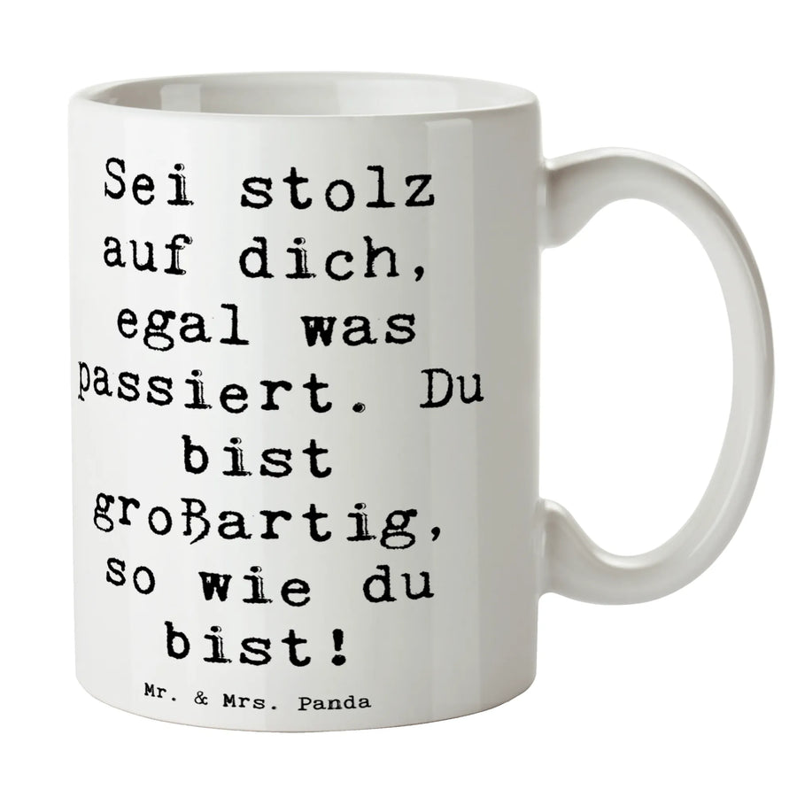 Die Botschaft auf der Tasse gibt Halt und stärkt das Selbstbewusstsein – ganz ohne laute Worte. Das Motiv ist brillant bedruckt mit Zeichnungen von Mr. & Mrs. Panda und wirkt sowohl tröstlich als auch stilvoll. Diese Tasse mit Zitaten ist ein liebevolles Geschenk für Geburtstage, Abschiede, Genesungswünsche oder einfach „nur so“. 🎁