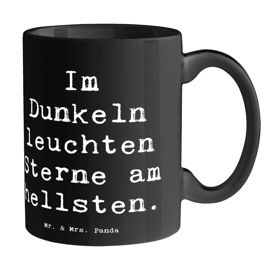 Entdecke die wundervolle Tasse "Angst vor Dunkelheit überwinden" aus der Mutmacher-Kollektion von Mr. & Mrs. Panda! Diese einzigartige Keramiktasse, die mit dem motivierenden Spruch "Im Dunkeln leuchten Sterne am hellsten." verziert ist, ist der perfekte Begleiter für all jene, die manchmal das Licht in der Dunkelheit suchen. Egal, ob du sie deinem besten Freund, deiner Schwester oder ganz besonders dir selbst schenkst – diese Tasse bringt stets ein Lächeln und eine Portion Zuversicht in den Alltag.