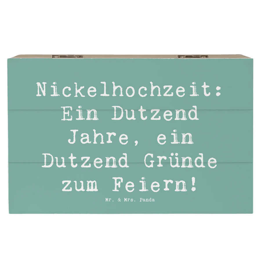 Die wunderschöne Holzkiste von Mr. & Mrs. Panda, bedruckt mit dem liebevollen Slogan "Nickelhochzeit: Ein Dutzend Jahre, ein Dutzend Gründe zum Feiern!", ist der perfekte Begleiter zum 12. Hochzeitstag. Diese stilvolle Kiste ist ideal für alle, die ihr gemeinsames Leben feiern und eine besondere Erinnerung an diesen tollen Anlass schaffen möchten. Egal, ob du sie selbst nutzen möchtest, um die schönsten Schätze aus deiner gemeinsamen Zeit aufzubewahren, oder als liebevolles Geschenk für ein Brautpaar oder Freunde zur Hochzeit – diese Erinnerungskiste passt perfekt zu jedem Anlass rund um die Liebe!