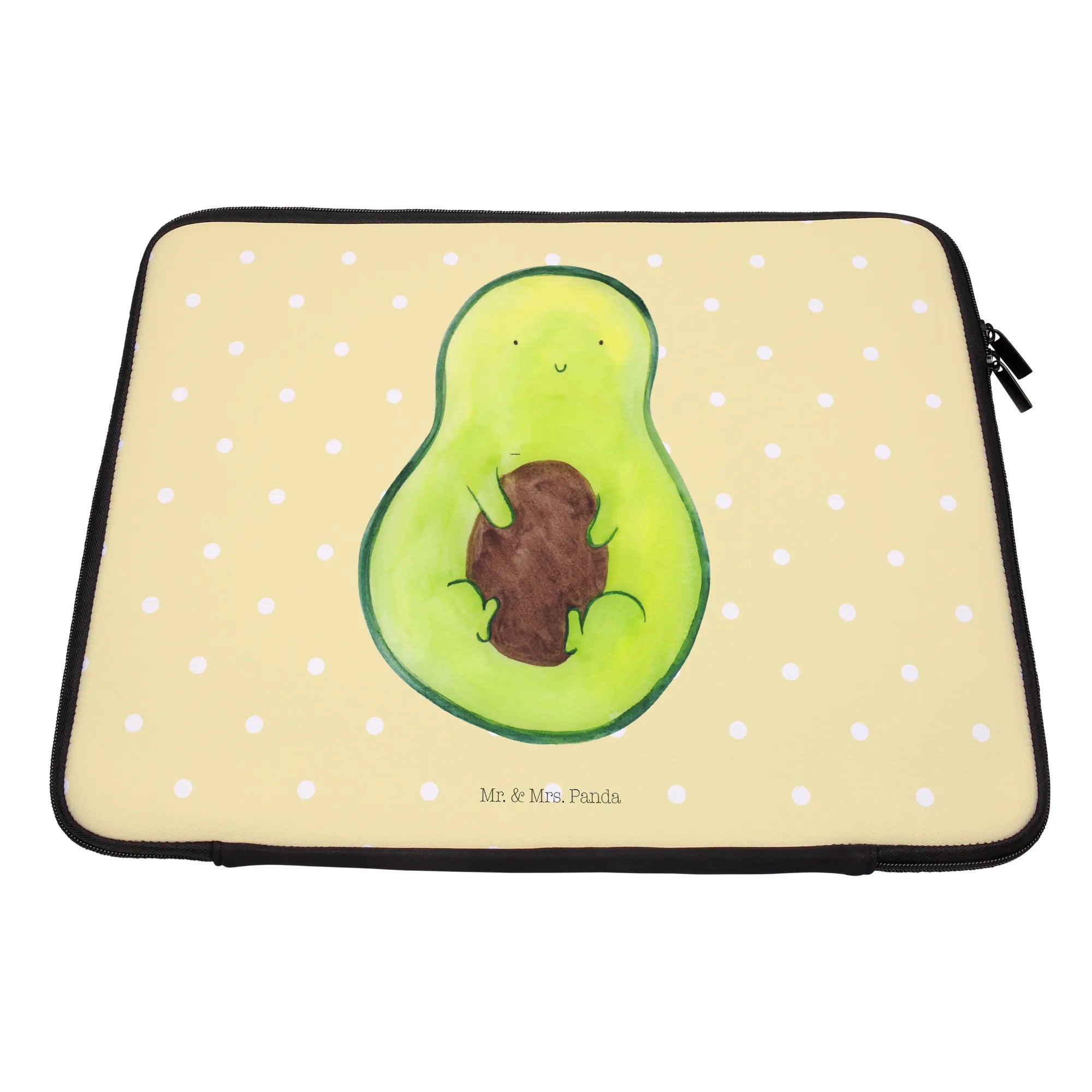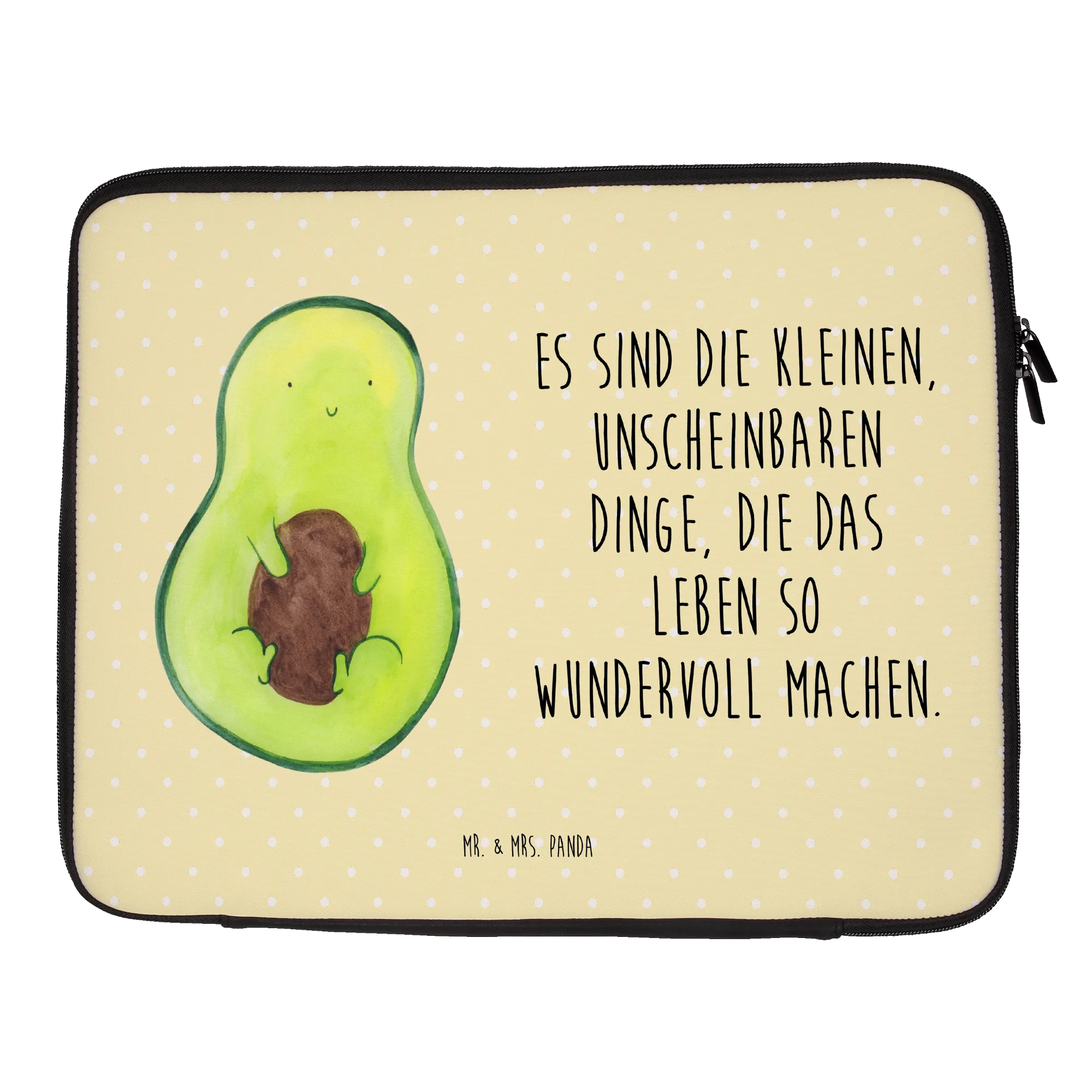 Verschenke mit der Notebook Tasche Avocado mit Kern von Mr. & Mrs. Panda ein Stück Lebensfreude und sorge dafür, dass das Herz des Beschenkten höher schlägt! Feiert die kleinen, wichtigen Dinge des Lebens und überrascht deine Liebsten mit diesem zauberhaften Geschenk, das Funktionalität mit einem Hauch von Niedlichkeit verbindet.