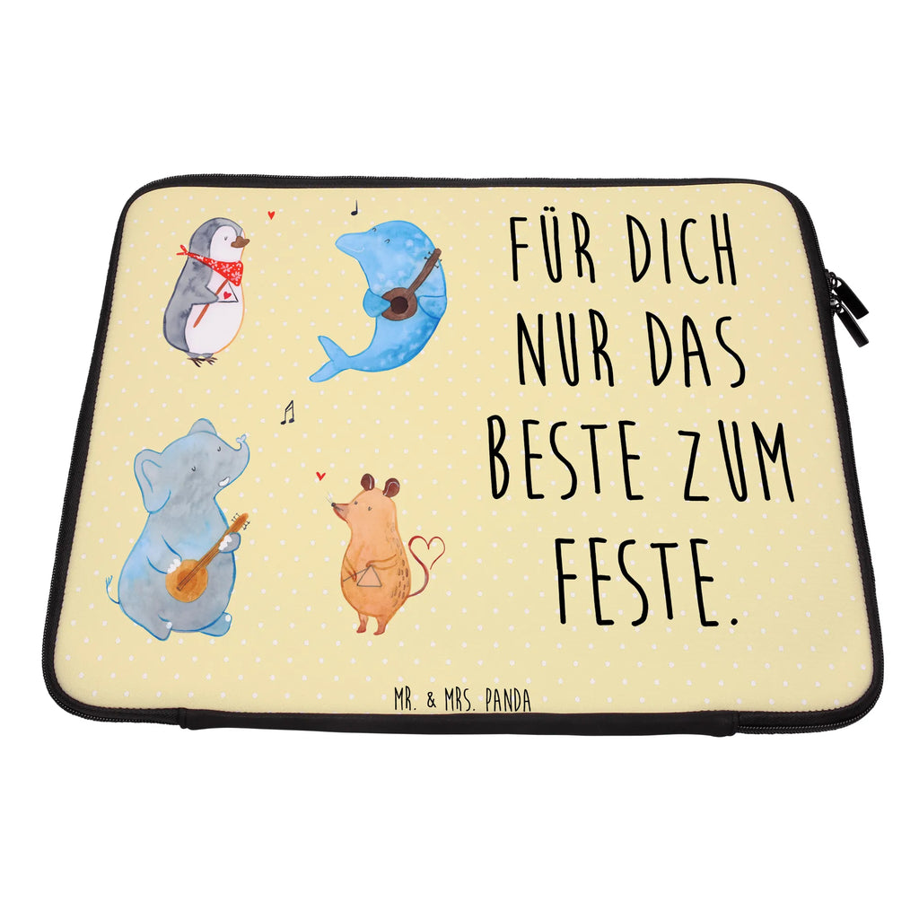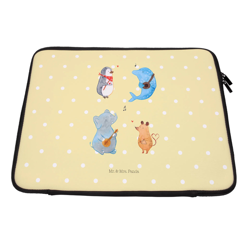 Die Kombination aus hochwertigem, wasserabweisendem Neopren und den süßen Tiermotiven sorgt für einen Hingucker, wo auch immer du bist. Mit dem charmanten Motiv, das einen Pinguin, eine Maus, einen Delfin und einen Elefanten zeigt, die gemeinsam musizieren, bekommst du ein Schmunzeln auf die Lippen! Diese tierische Truppe spielt die schönsten Melodien, und gemeinsam mit den bunten Farben wird sie deine gute Laune steigern.