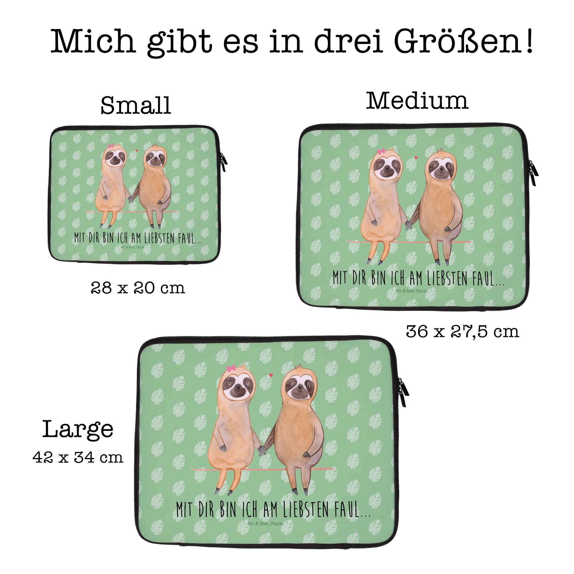 Das wasserabweisende Neopren schützt Deine Geräte vor Kratzern, Staub und anderen Schäden – ideale Bedingungen für unterwegs! Egal ob Du die Tasche selbst nutzt oder als Geschenk für Dein Lieblings-Pärchen oder einen Faultier-Liebhaber auswählst, die tolle Verarbeitung und das liebevolle Design werden einfach begeistern.