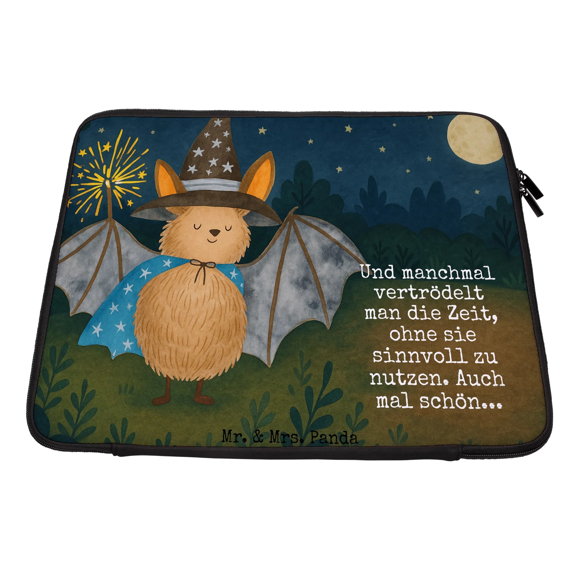 Notebook Tasche Fledermaus Zauberer Design - 20 x 28 cm - mit Spruch