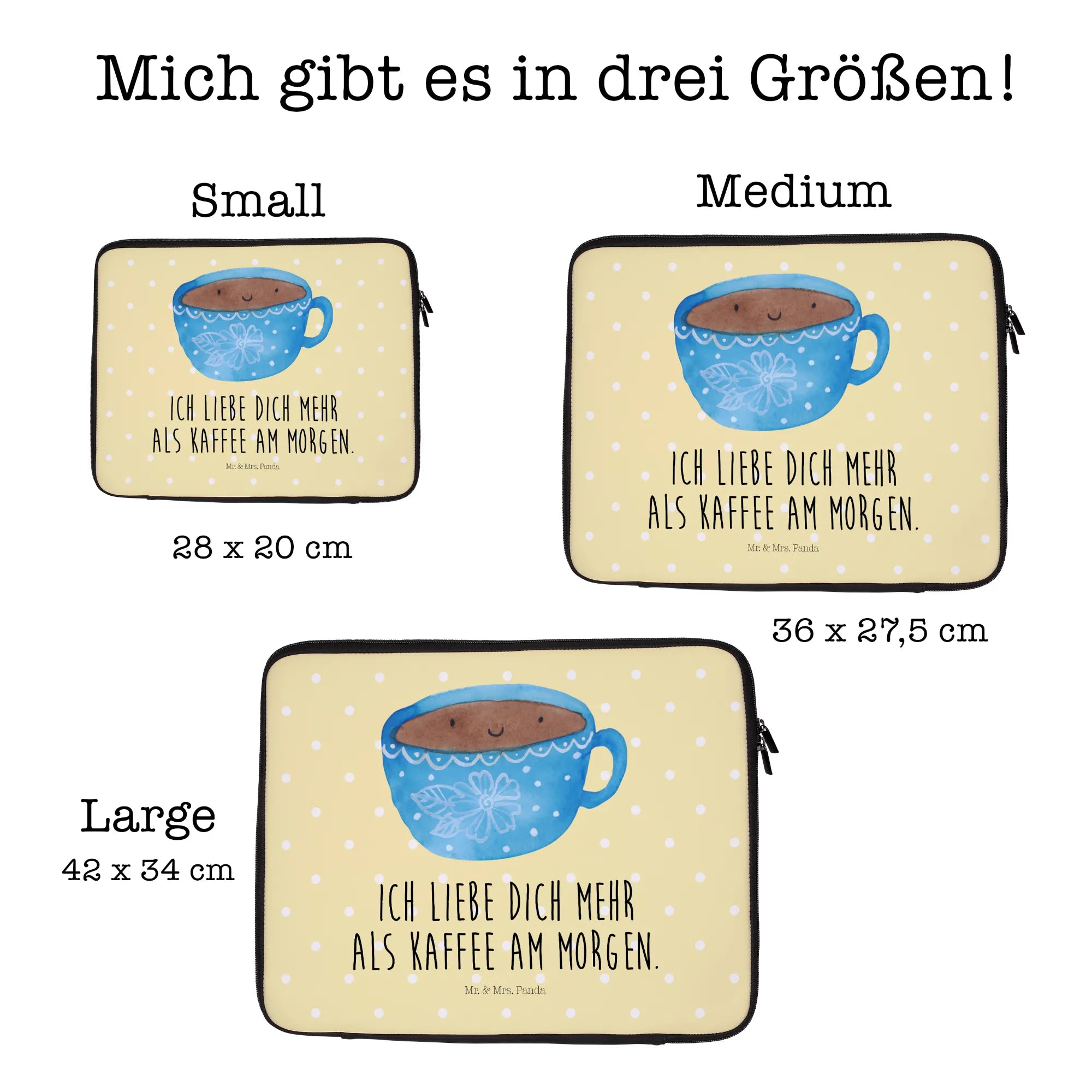 Die Notebook Tasche mit dem süßen Kaffee-Tassen-Motiv von Mr. & Mrs. Panda ist der perfekte Begleiter für all jene, die ihren Laptop mit Stil und einer Portion guter Laune schützen möchten. Diese leichte und wunderschöne Computertasche ist nicht nur praktisch, sondern auch ein echter Hingucker. Hergestellt aus hochwertigem, wasserabweisendem Neopren mit Kunstfaser, bietet sie optimalen Schutz für dein geliebtes Notebook. Egal ob auf dem Weg zur Arbeit, in die Uni oder auf Reisen – diese Tasche gewährleistet, dass dein Laptop immer gut aufgehoben ist. Mit Maßen von 420 mm x 320 mm x 30 mm passt sie perfekt in jede Messenger Bag oder Rucksack.