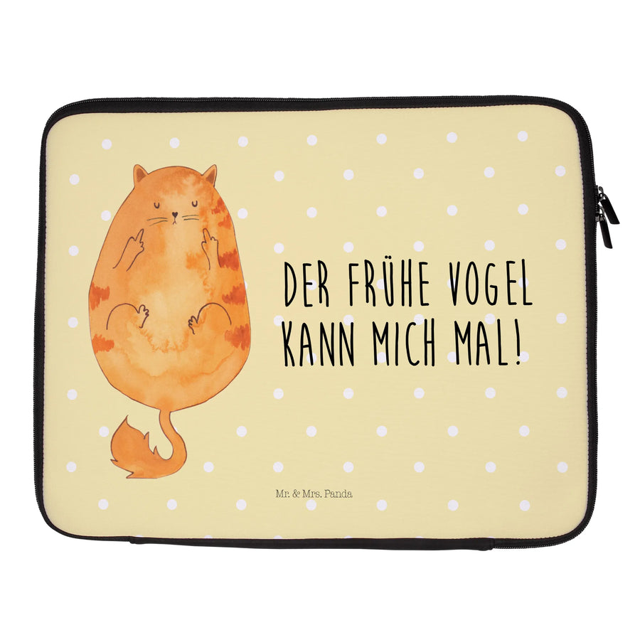 Die Notebook Tasche "Katze Frühaufsteher" von Mr. & Mrs. Panda ist der perfekte Begleiter für alle Katzenliebhaber und Frühaufsteher. Mit dem witzigen Slogan "Der frühe Vogel kann mich mal!" bringt sie nicht nur ein Lächeln in deinen Alltag, sondern sorgt auch dafür, dass dein Laptop bestens geschützt ist.