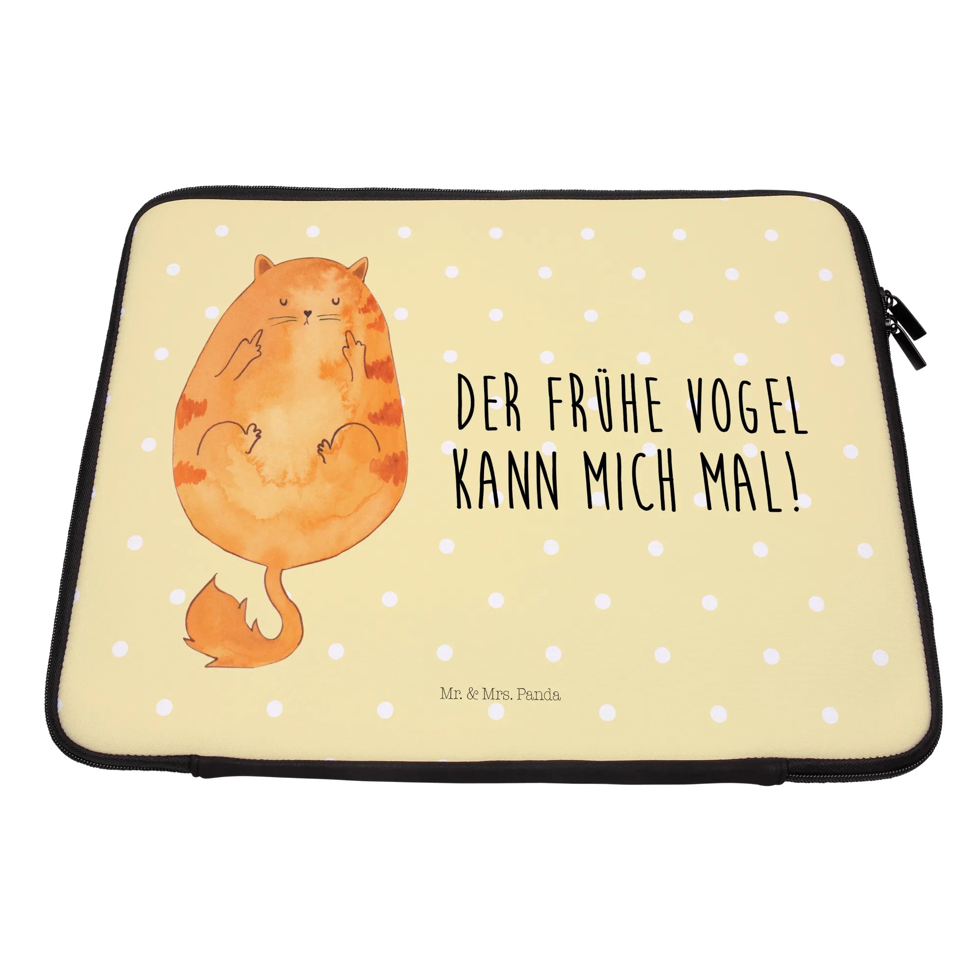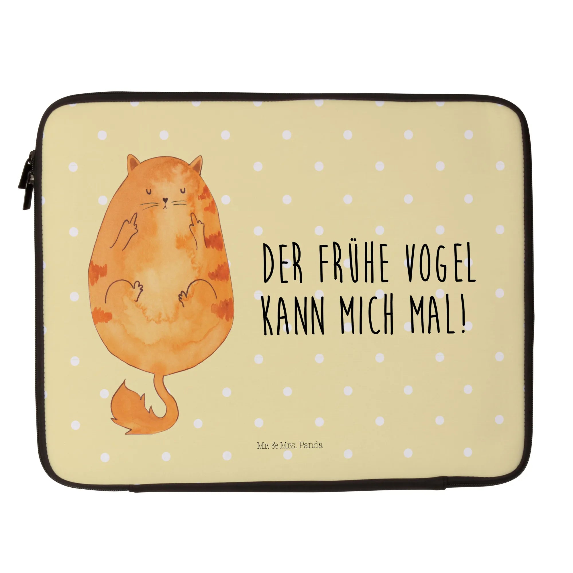 Diese zauberhafte Notebook Tasche von Mr. & Mrs. Panda ist nicht nur ein funktionales Accessoire, sondern auch ein echter Blickfang. Mit dem lustigen Spruch "Der frühe Vogel kann mich mal!" zeigt die Katze ihren unkonventionellen Charme und eignet sich hervorragend für Katzenliebhaber und Kaffee-Fans gleichermaßen.