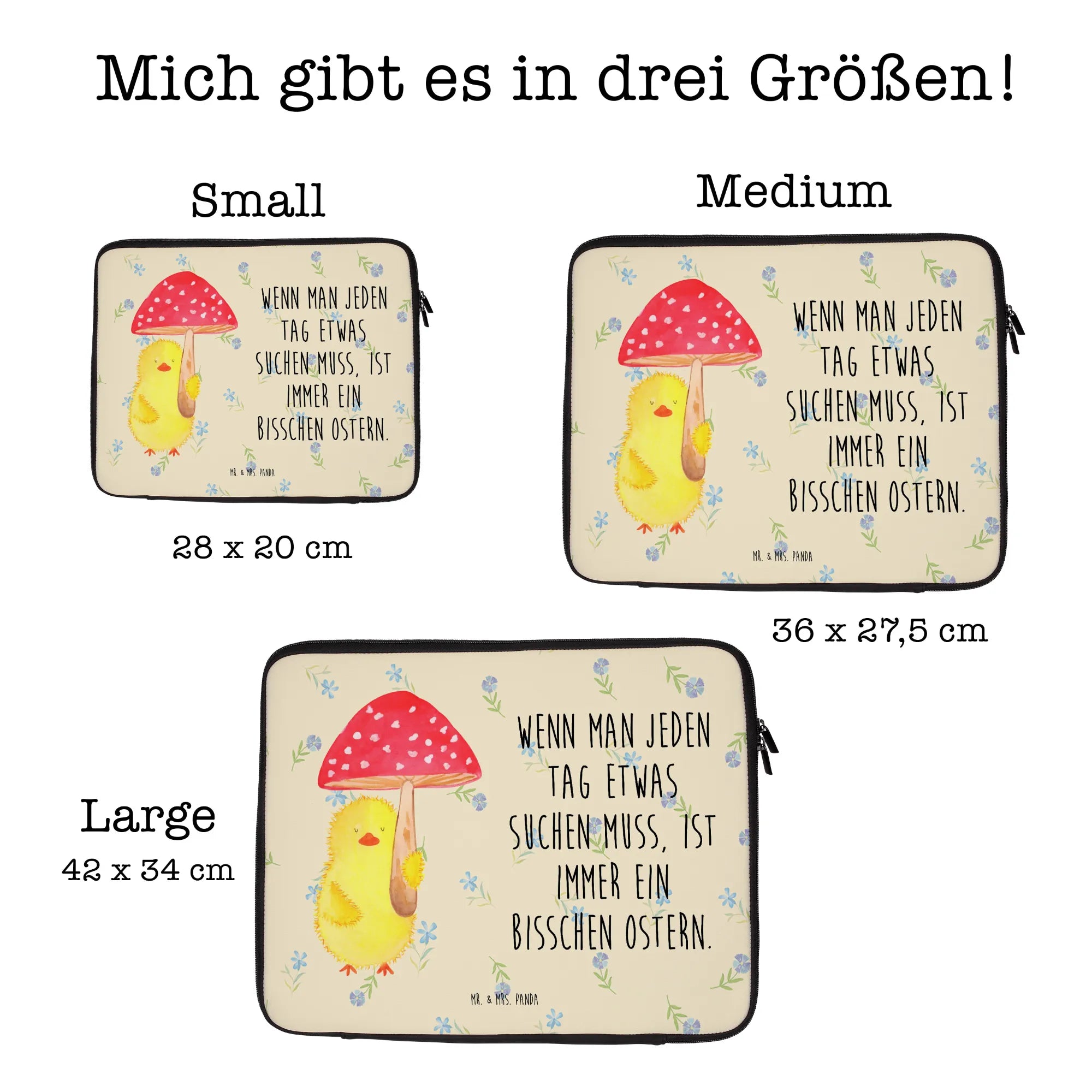 Die Notebook Tasche "Küken Fliegenpilz" ist also mehr als nur ein praktischer Begleiter – sie ist ein kleines Stück Fröhlichkeit, das perfekte Geschenk zu Ostern und ein Teil der tollen Ostern-Kollektion von Mr. & Mrs. Panda!