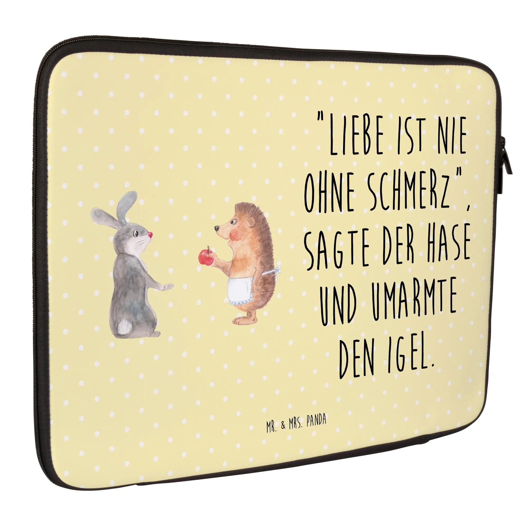 Diese wunderbare Notebook Tasche von Mr. & Mrs. Panda ist das perfekte Accessoire für alle, die ihre technischen Geräte stilvoll schützen möchten. Mit dem sentimentalen Motiv "Liebe ist nie ohne Schmerz" bringt diese tolle Tasche ein wenig Romantik in deinen Alltag. Der niedliche Hase und der süße Igel umarmen sich, während sie die Botschaft verkörpern, dass auch wenn Liebe manchmal schmerzlich ist, sie doch schön und stark sein kann.