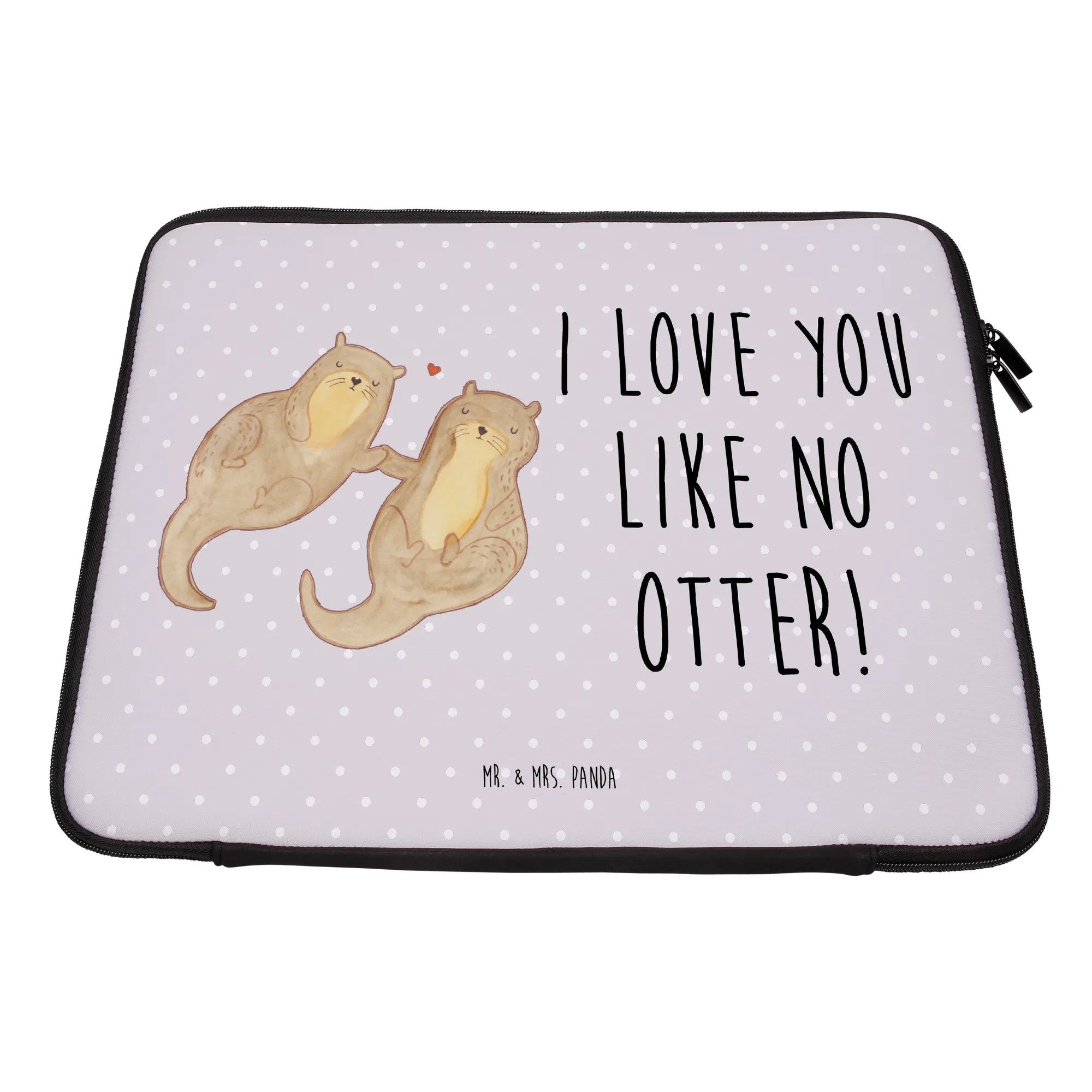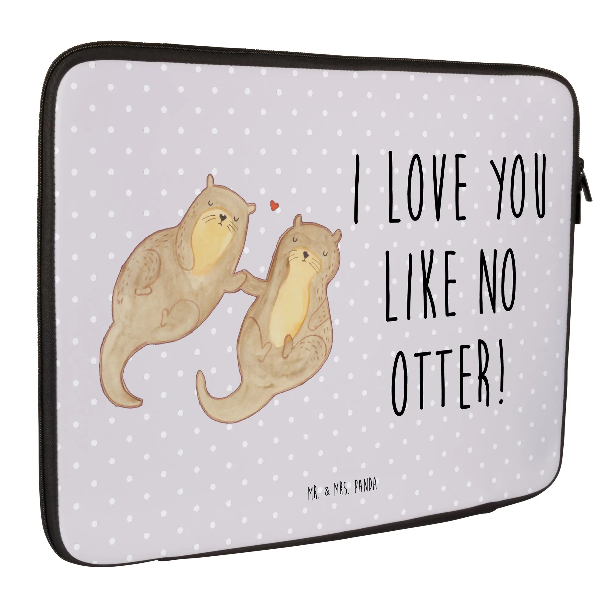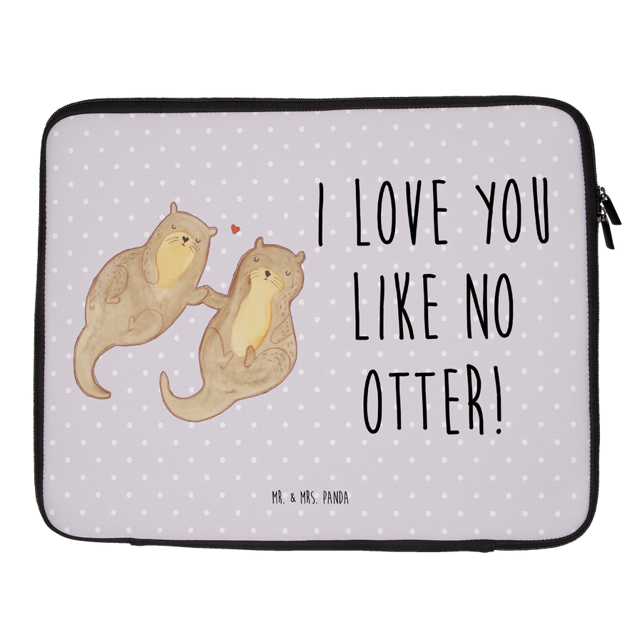 Die Notebook Tasche von Mr. & Mrs. Panda mit dem zauberhaften Motiv "Otter händchenhaltend" ist das perfekte Geschenk für Otterliebhaber!