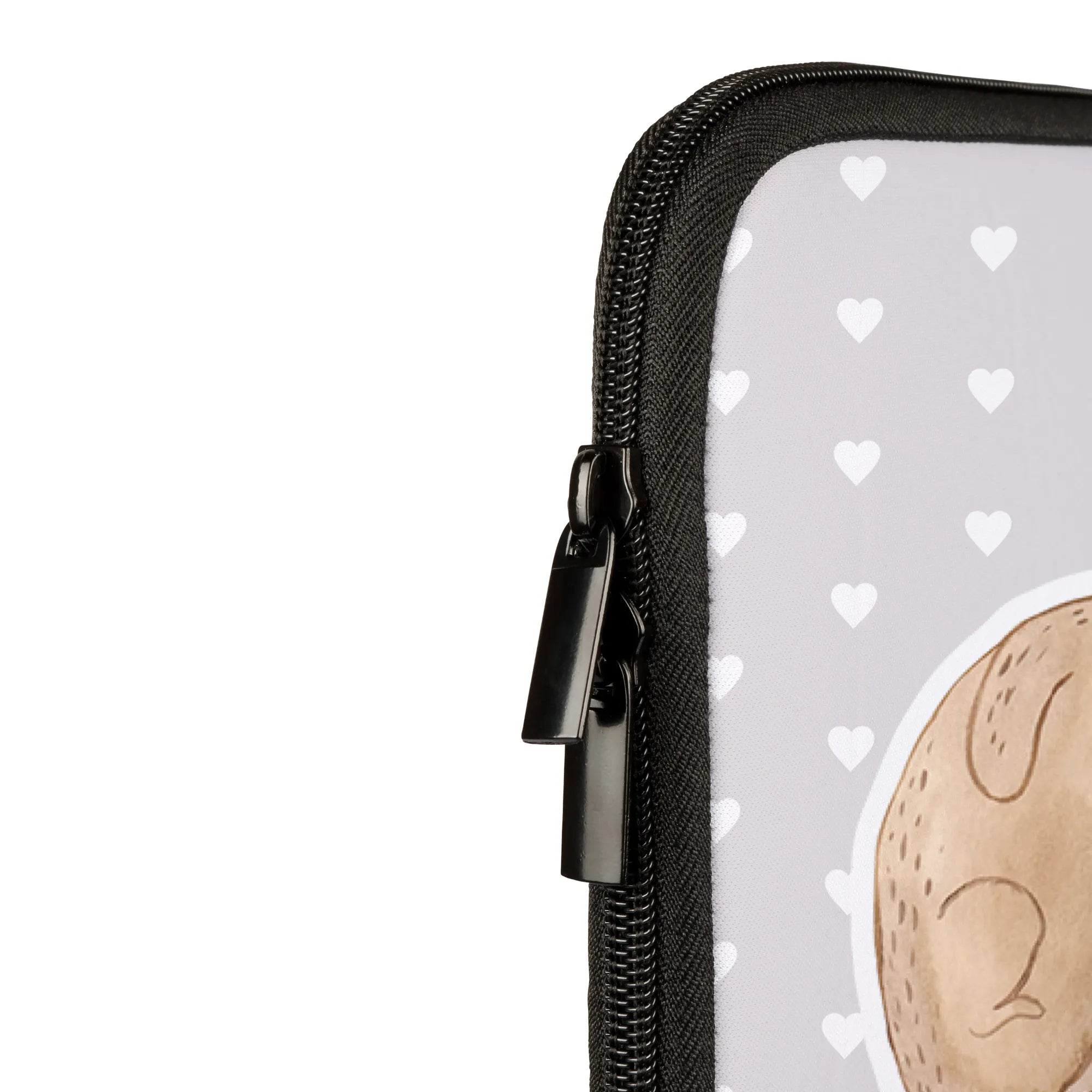 Die charmante Illustration zeigt zwei Otter, die sich an den Pfoten halten und ein Herz bilden, perfekt geeignet für Paare, die ihre Verbundenheit ausdrücken möchten. Die Tasche ist aus hochwertigem, wasserabweisendem Neopren gefertigt und bietet optimalen Schutz für dein Notebook oder Laptop.