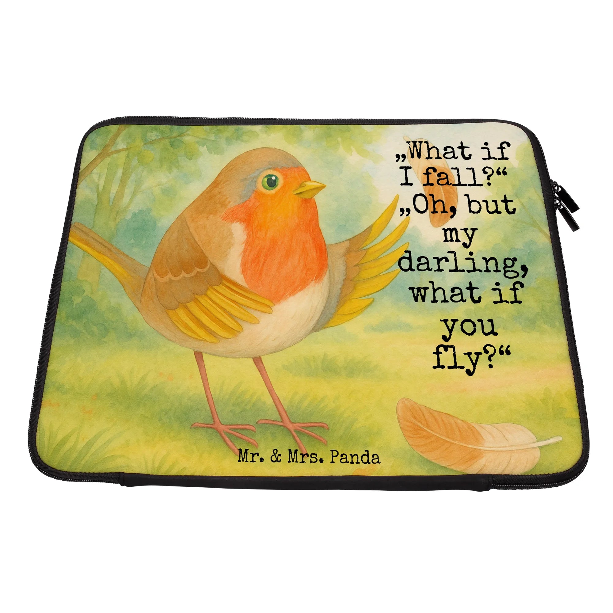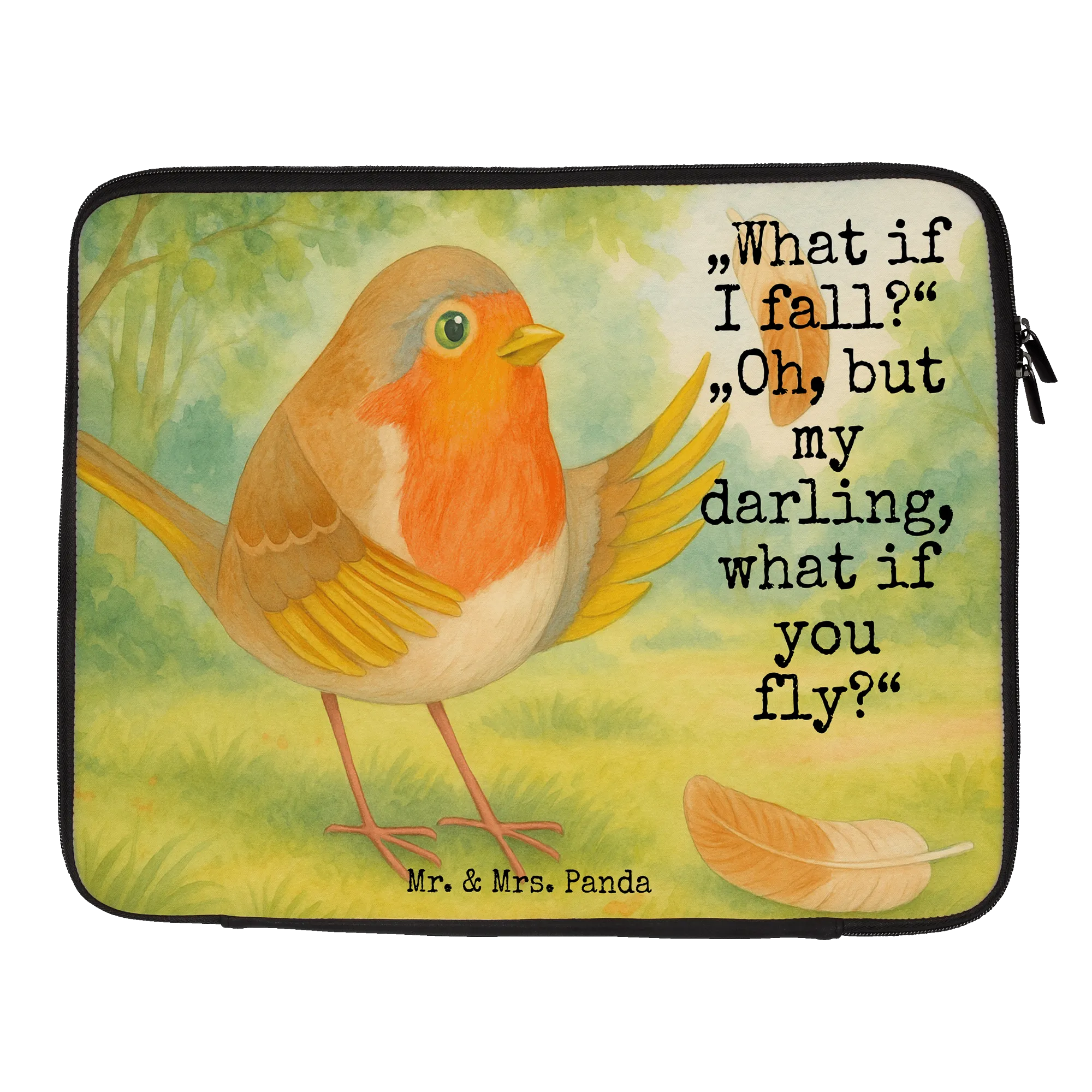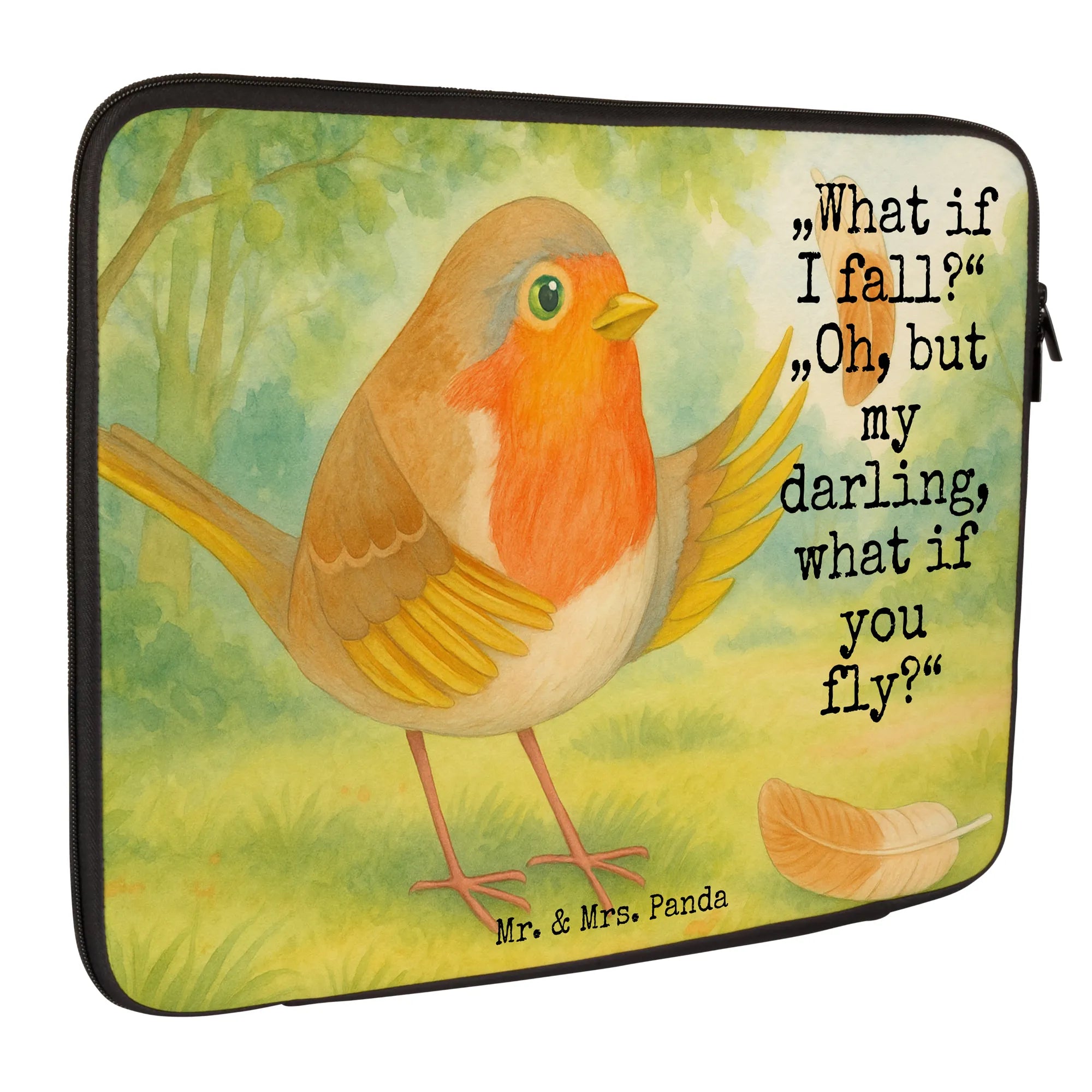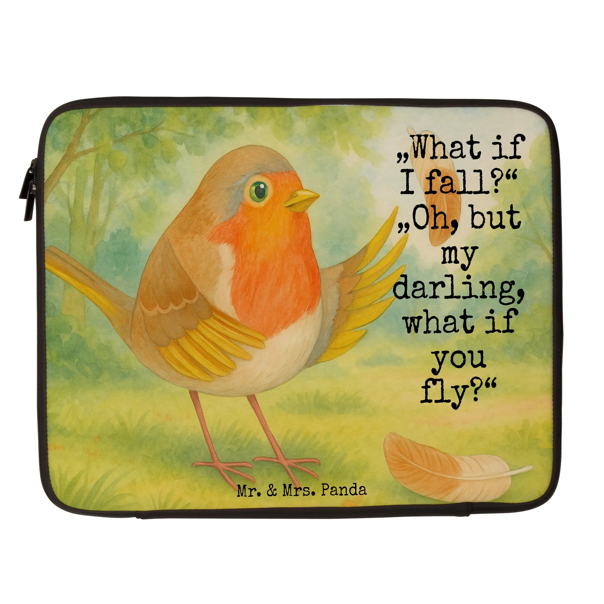 Notebook Tasche Rotkehlchen Federn Design - 20 x 28 cm - mit Spruch