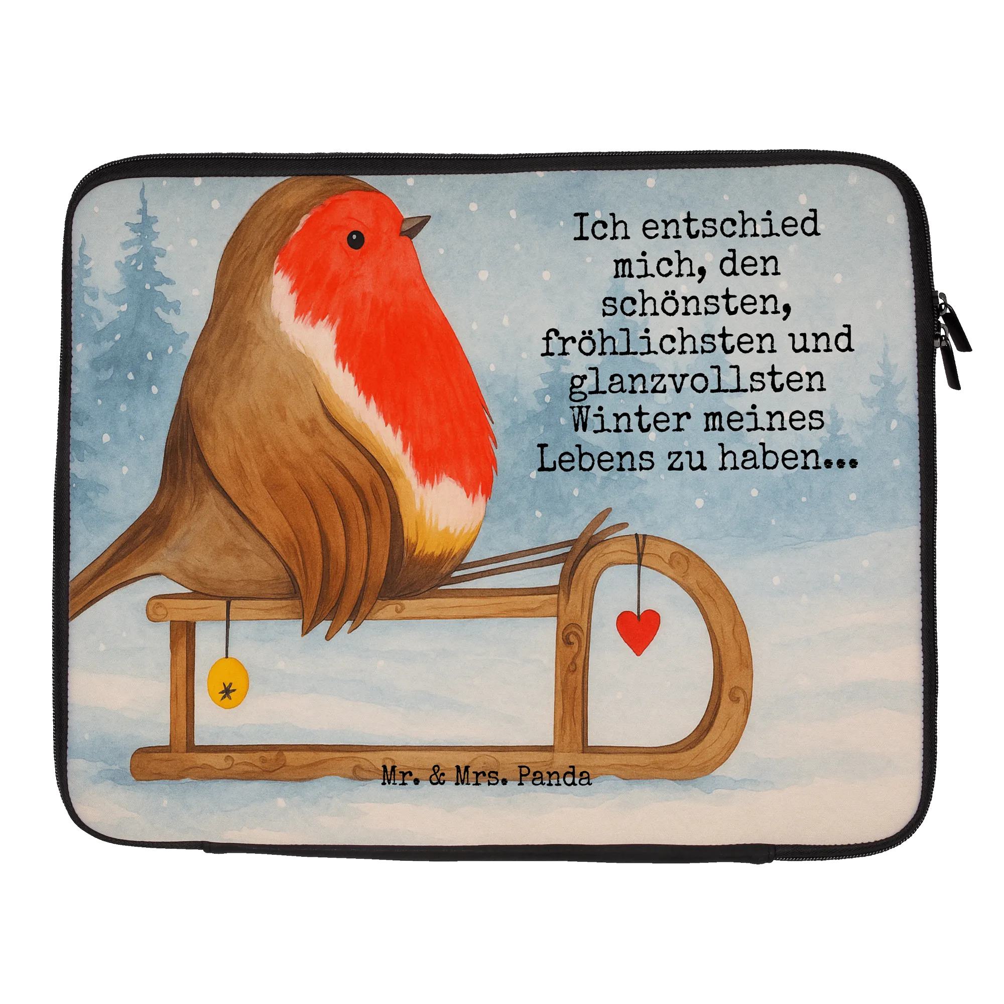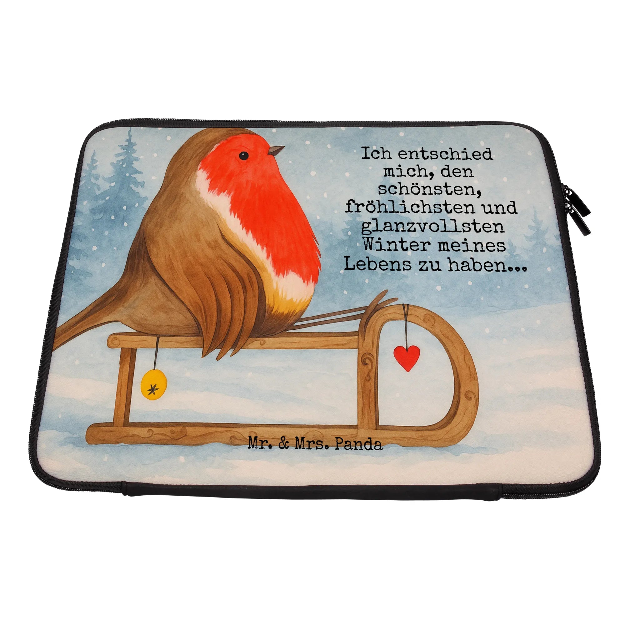 Notebook Tasche Rotkehlchen Schlitten Design - 20 x 28 cm - mit Spruch