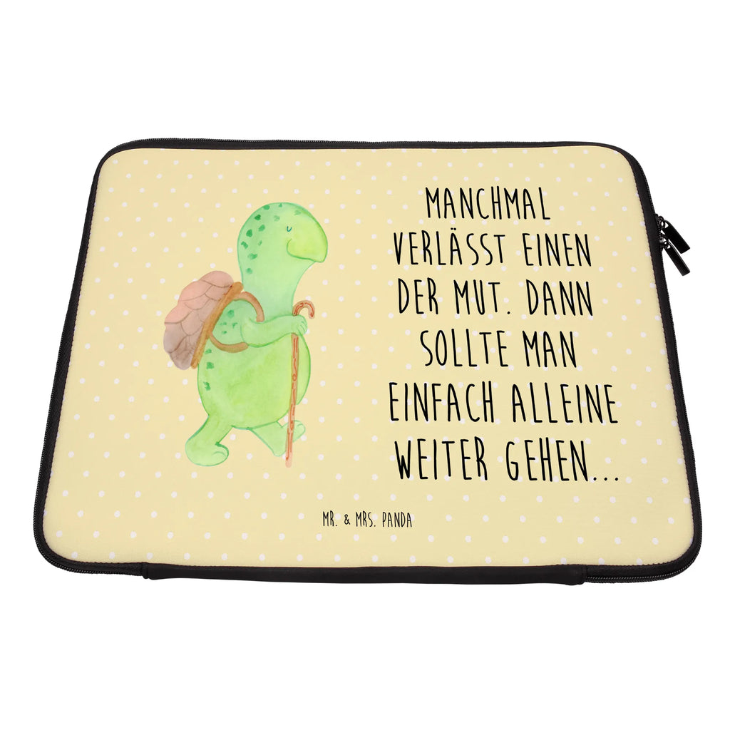 Die Notebook Tasche Schildkröte Wanderer von Mr. & Mrs. Panda ist der ideale Begleiter für alle, die ihre technischen Geräte sowohl stilvoll als auch sicher transportieren möchten. Diese hochwertige Tasche verbindet Funktionalität mit einem charmanten Design, das mit einer liebevoll handgezeichneten Schildkröte verziert ist.
