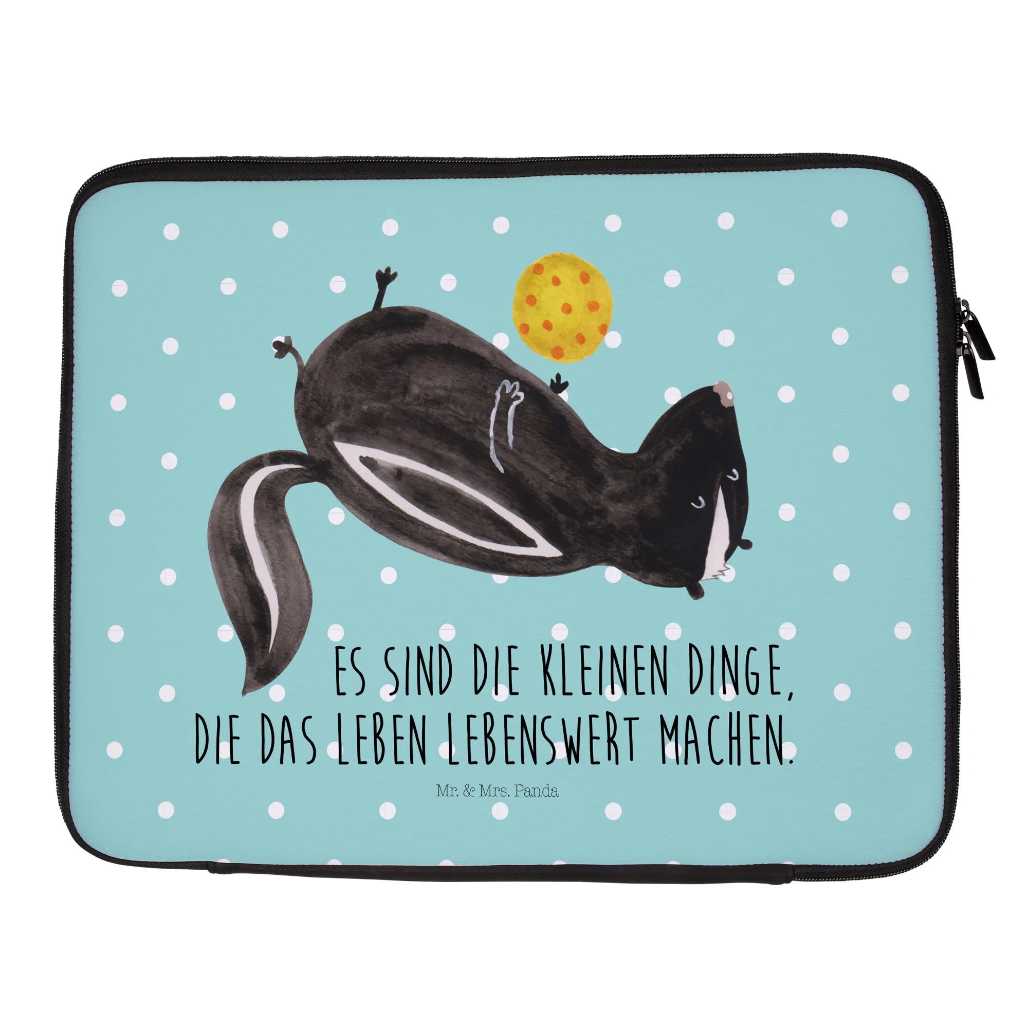 Die Notebook Tasche mit dem niedlichen Stinktier Ball Motiv aus der Stinktier-Kollektion von Mr. & Mrs. Panda ist das perfekte Geschenk für alle, die ihre technischen Geräte stilvoll schützen möchten. Diese leichte und wunderschöne Notebook Tasche begeistert mit ihrem einzigartigen Design, das nicht nur funktional ist, sondern auch gute Laune verbreitet.