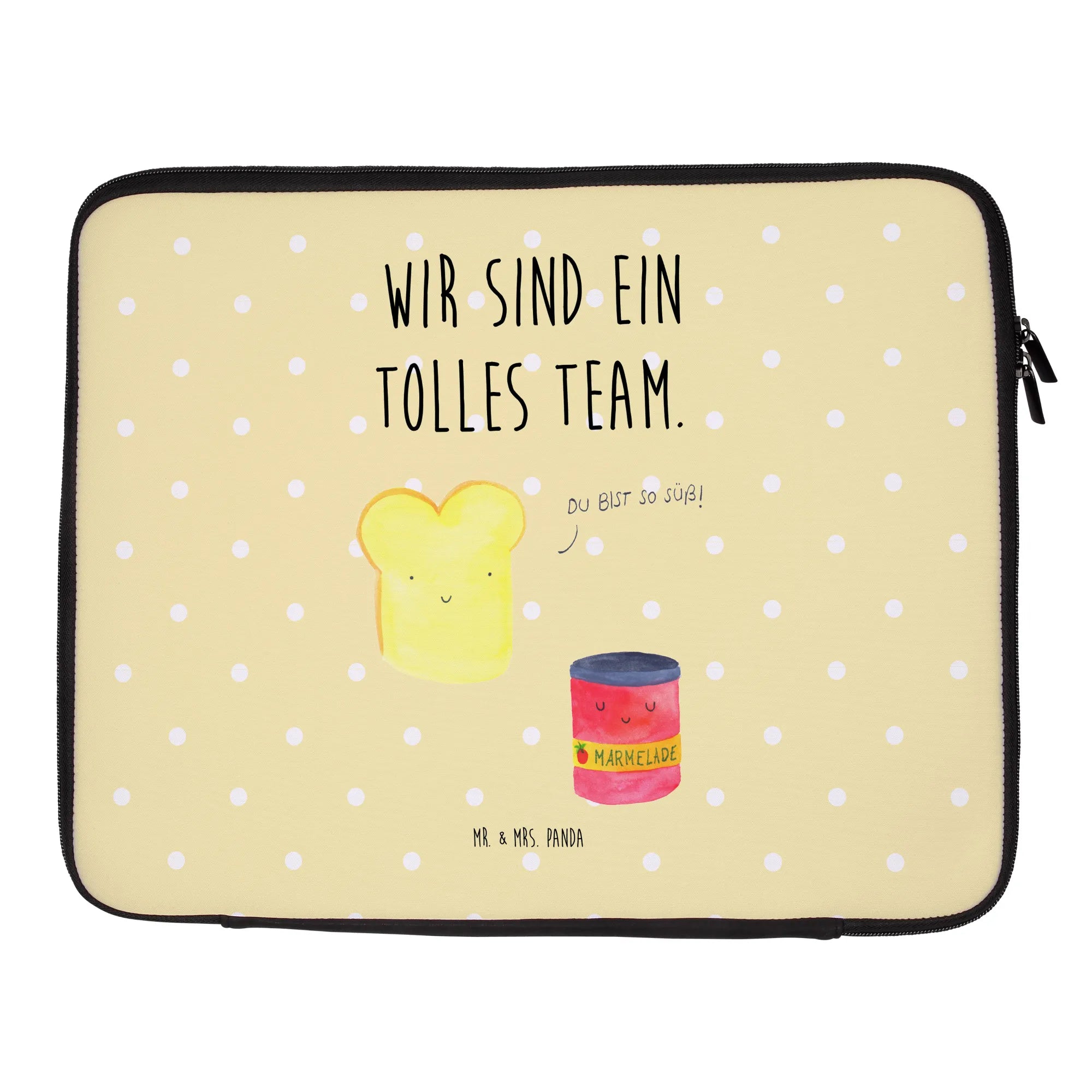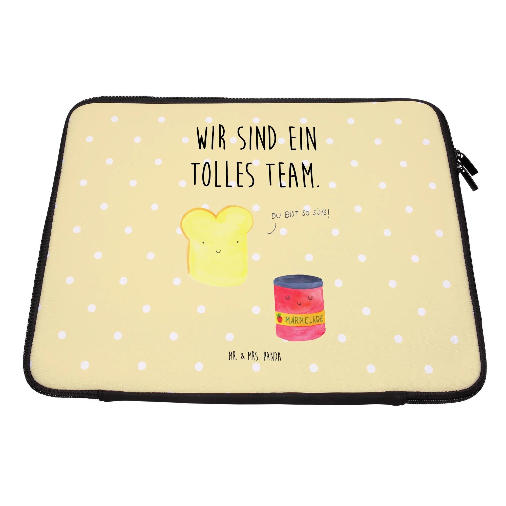 Die Notebook Tasche "Toast & Marmelade" aus der zauberhaften Small World Kollektion von Mr. & Mrs. Panda ist das perfekte Geschenk für alle, die das Besondere lieben. Sie stellt den idealen Schutz für dein Laptop oder Notebook dar und ist gleichzeitig ein echter Hingucker! Das süße Motiv mit dem Aufdruck "Wir sind ein tolles Team" bringt garantiert gute Laune in jeden Arbeitstag.