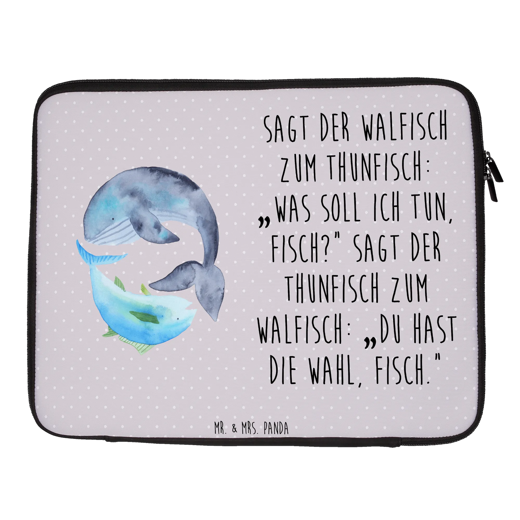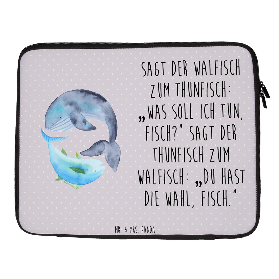 Notebook Tasche Walfisch Thunfisch - 33 x 42 cm - mit Spruch - Grau Pastell