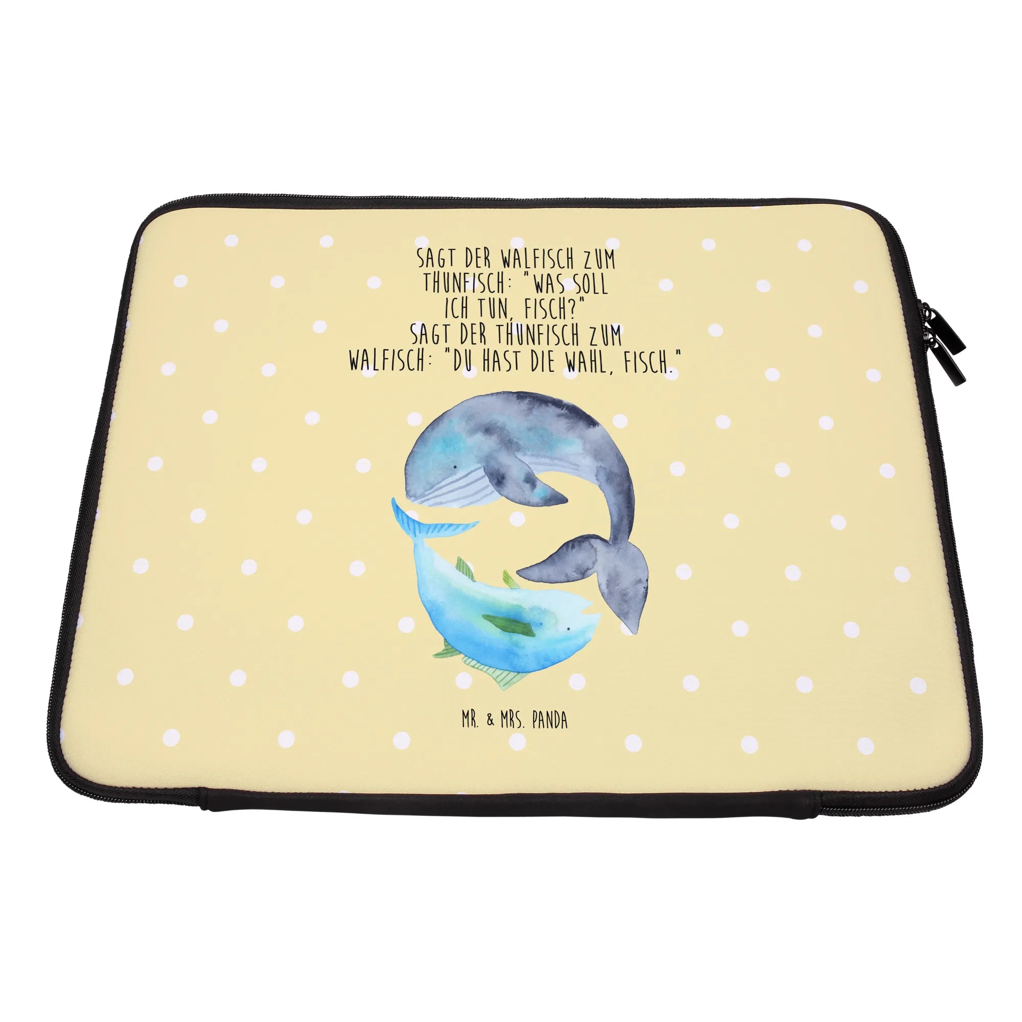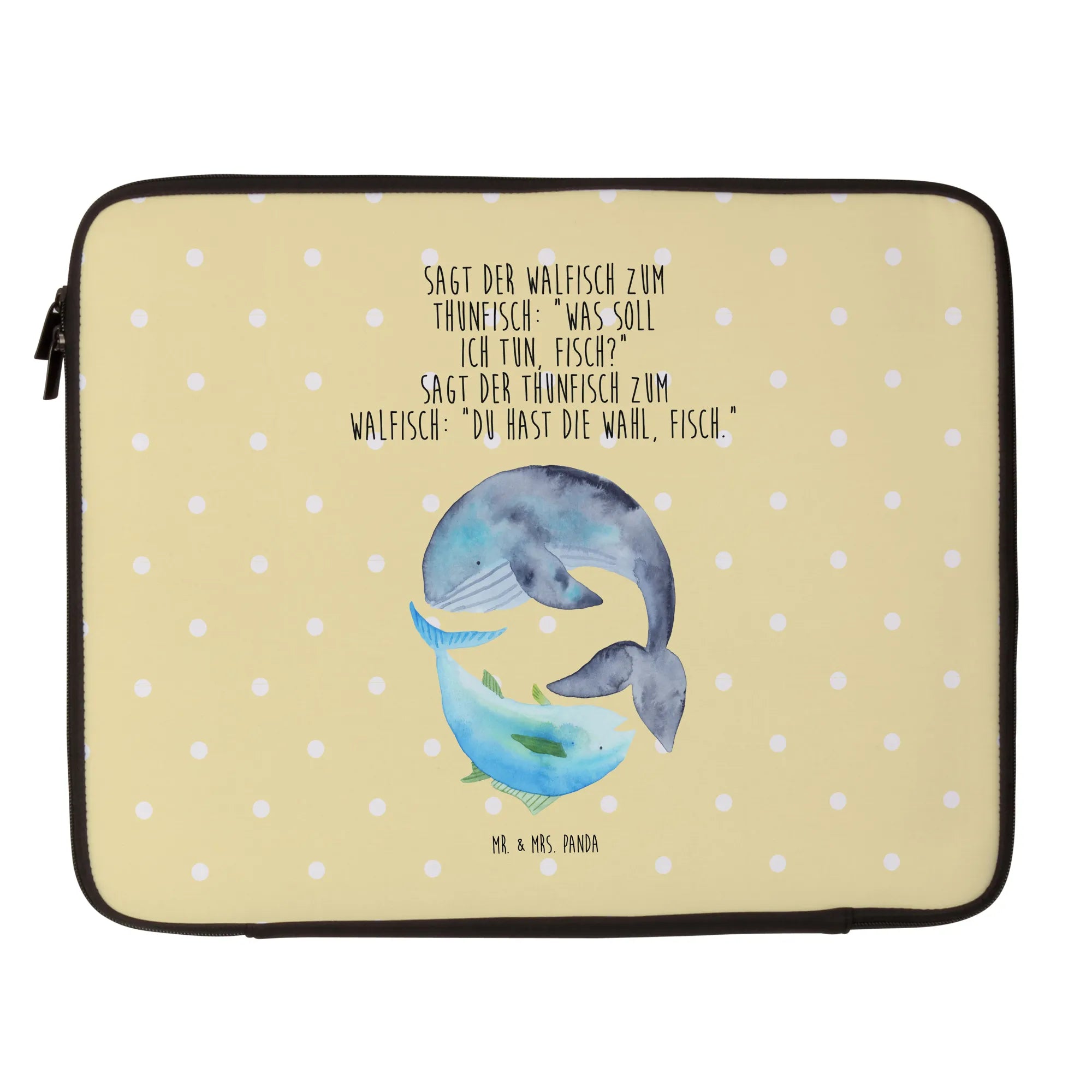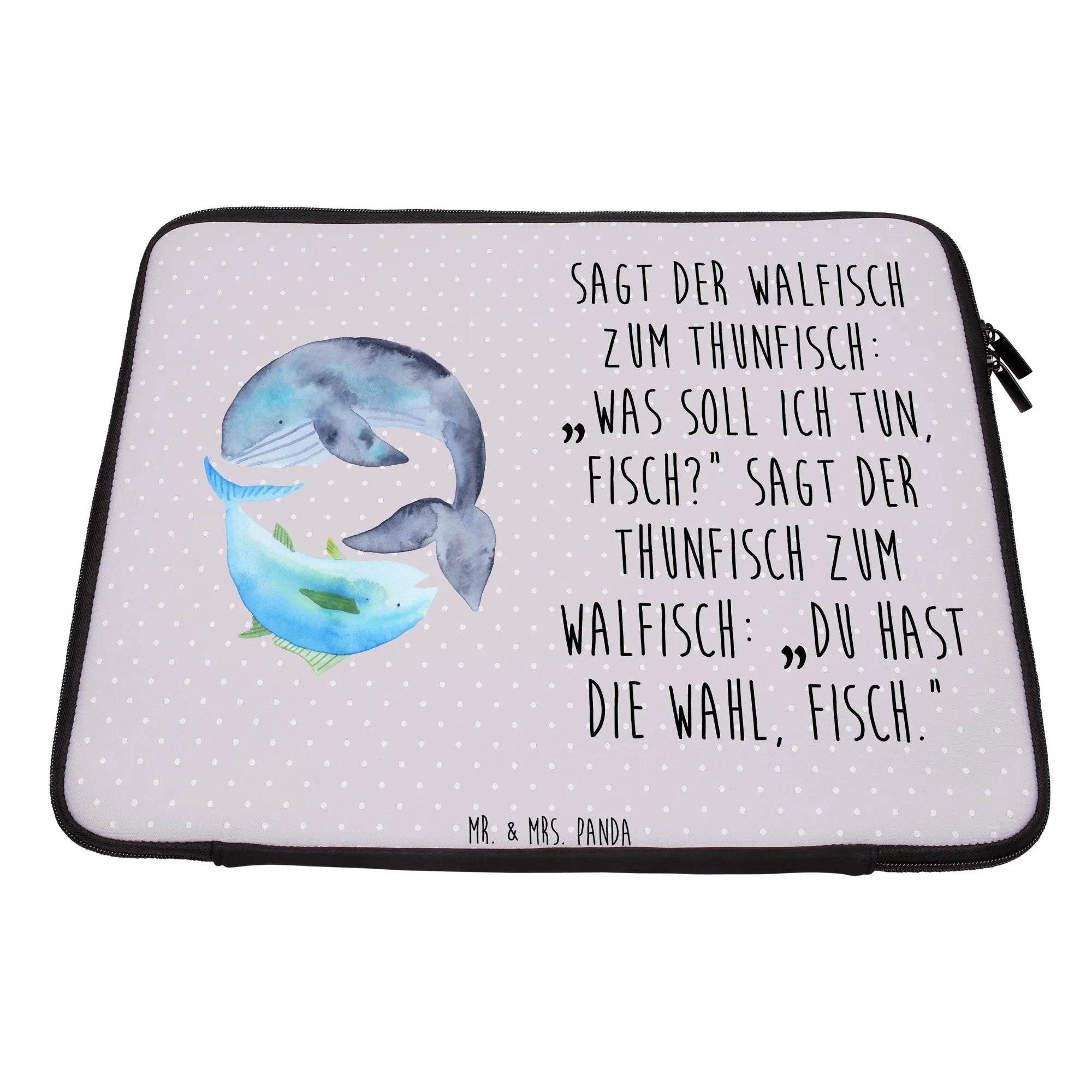 Verschenke gute Laune und schütze gleichzeitig das, was dir wichtig ist – mit der Notebook Tasche Walfisch & Thunfisch von Mr. & Mrs. Panda! Jeder wird sie lieben und sie wird schnell zum treuen Begleiter für all deine Abenteuer werden.