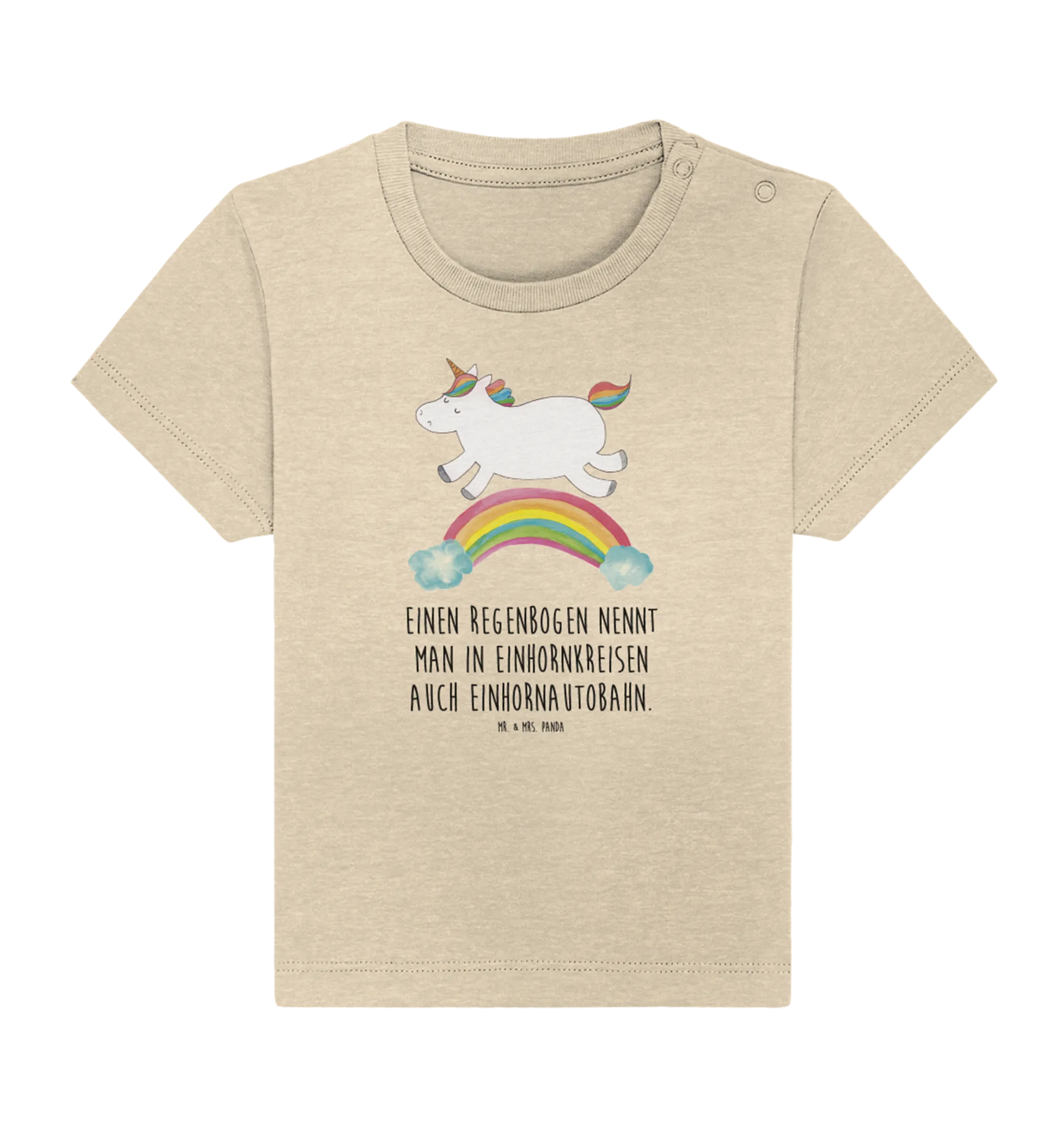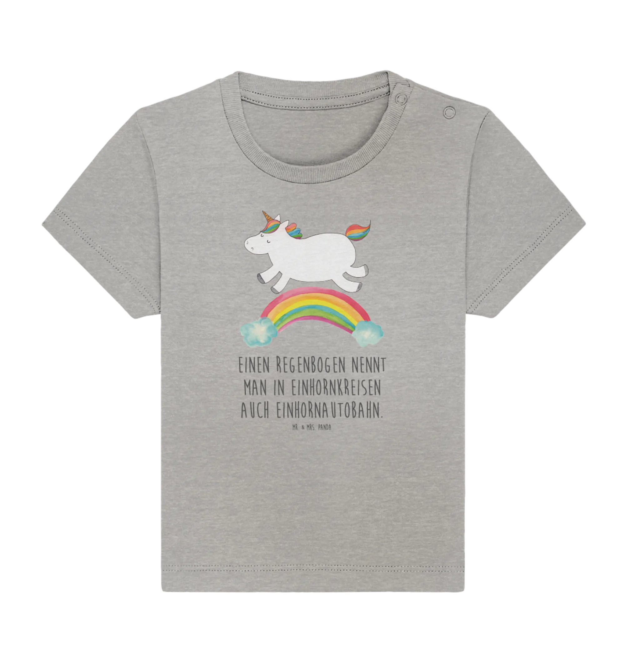 Das Organic Baby Shirt mit dem niedlichen Motiv "Einhorn Regenbogen" aus der bezaubernden Einhorn-Kollektion von Mr. & Mrs. Panda ist das perfekte Geschenk für junge Eltern und ihre kleinen Abenteuerlustigen!