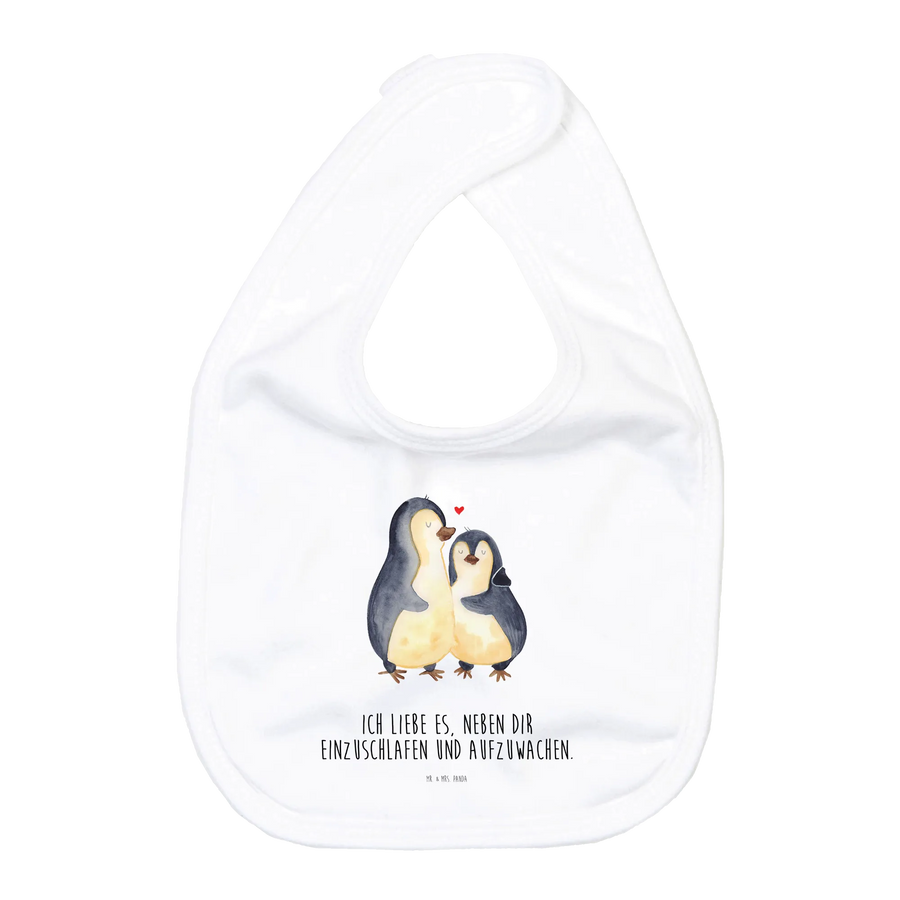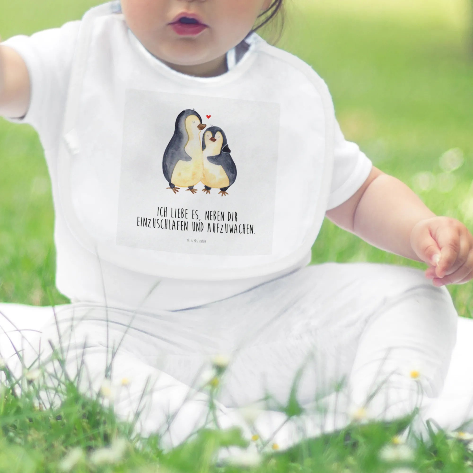 Mit dem zauberhaften Motiv der niedlichen Pinguine, die sich liebevoll umarmen, zaubert es jedem ein Lächeln ins Gesicht. Über dem Pinguin-Pärchen schwebt ein kleines rotes Herz, das die innige Verbundenheit zwischen den beiden symbolisiert. Der Slogan "Ich liebe es, neben dir einzuschlafen und aufzuwachen" macht dieses Lätzchen zu einem ganz besonderen Liebesgeschenk, das Elternherzen höherschlagen lässt.