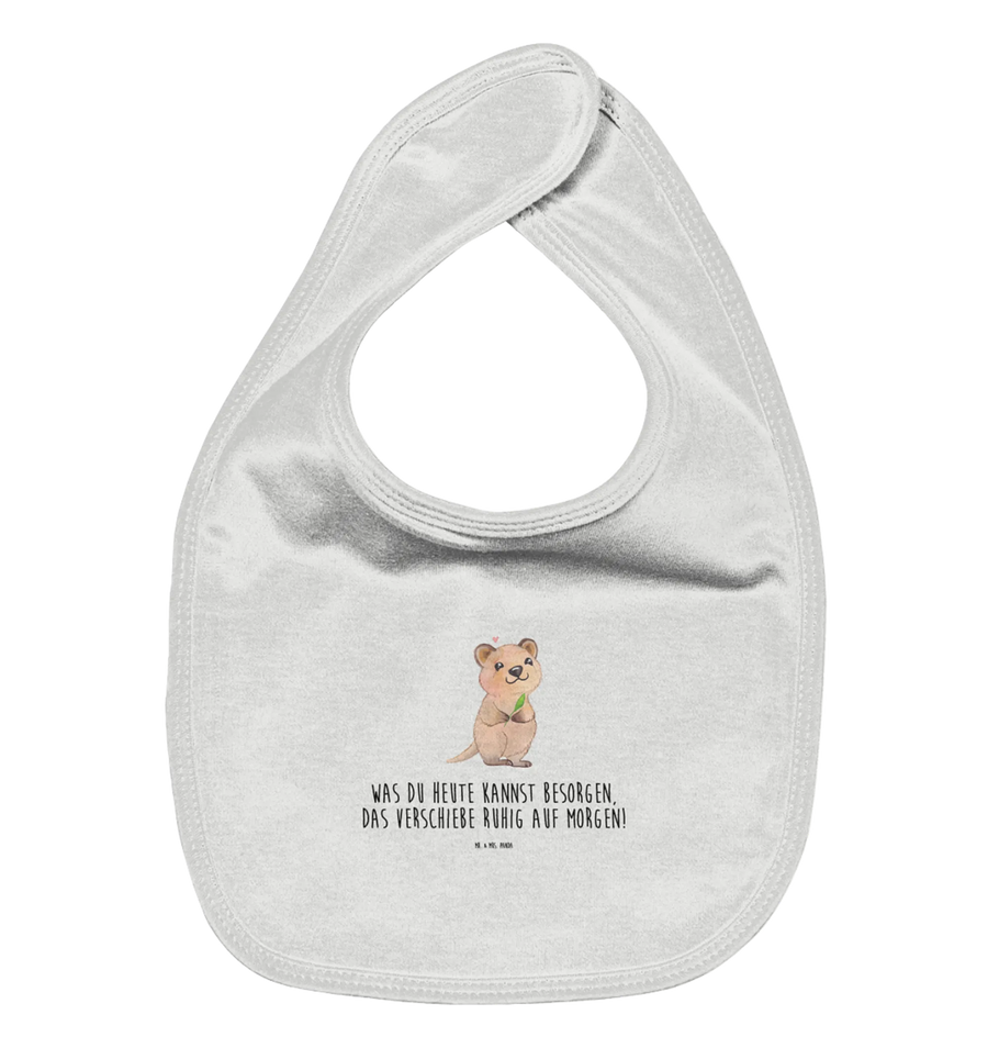 Auf dem Lätzchen prangt ein süßes Quokka mit einem strahlenden Lächeln und einem kleinen, rosa Herz, welches seine positive Ausstrahlung unterstreicht. Der lustige Spruch „Was du heute kannst besorgen, das verschiebe ruhig auf morgen!“ bringt nicht nur die Eltern zum Schmunzeln, sondern macht auch das Füttern zum Vergnügen. Diese Kollektion ist perfekt für alle, die ein Stück gute Laune in den Alltag bringen möchten. Jedes Detail des Designs wurde mit viel Liebe zum Detail von Mrs. Panda handgezeichnet.