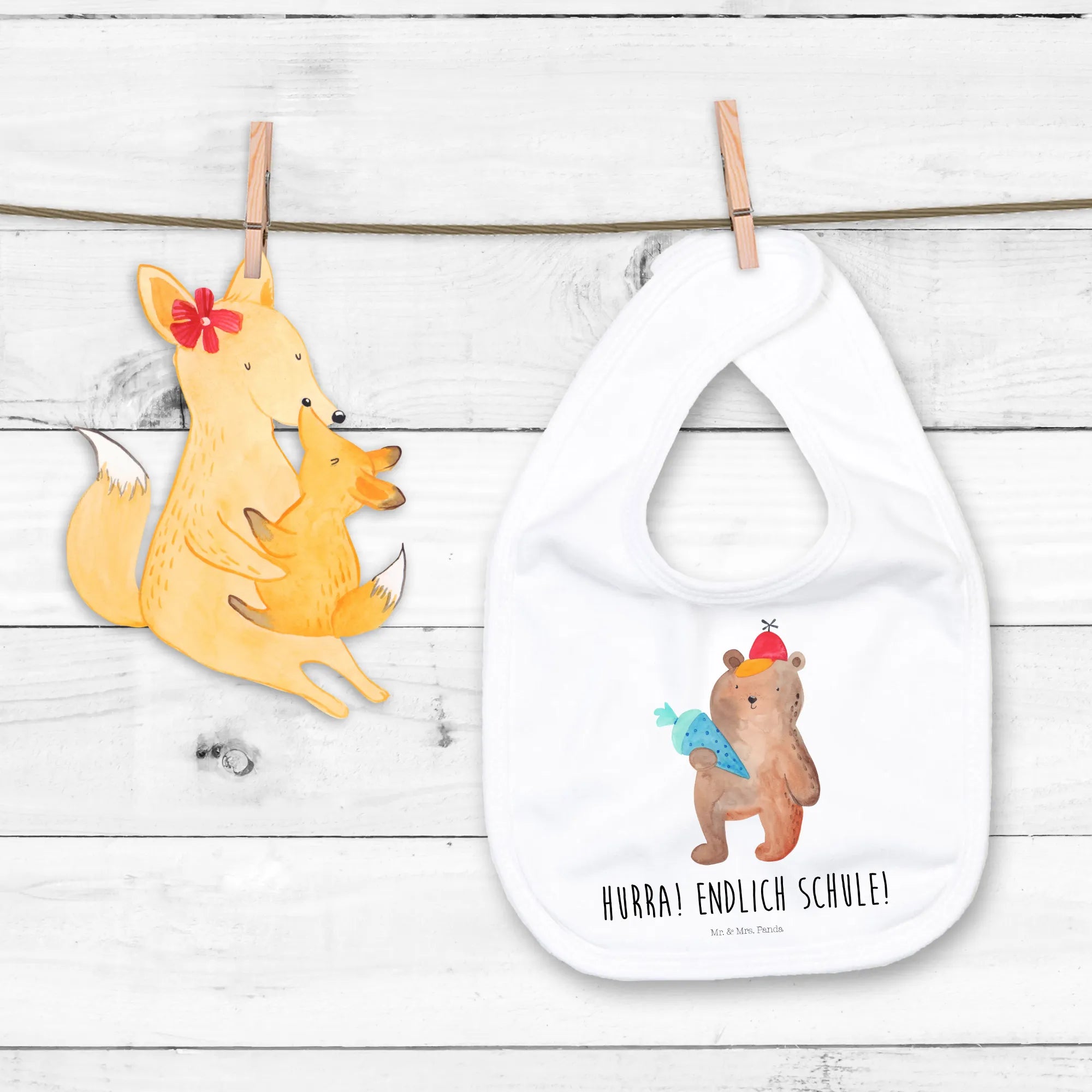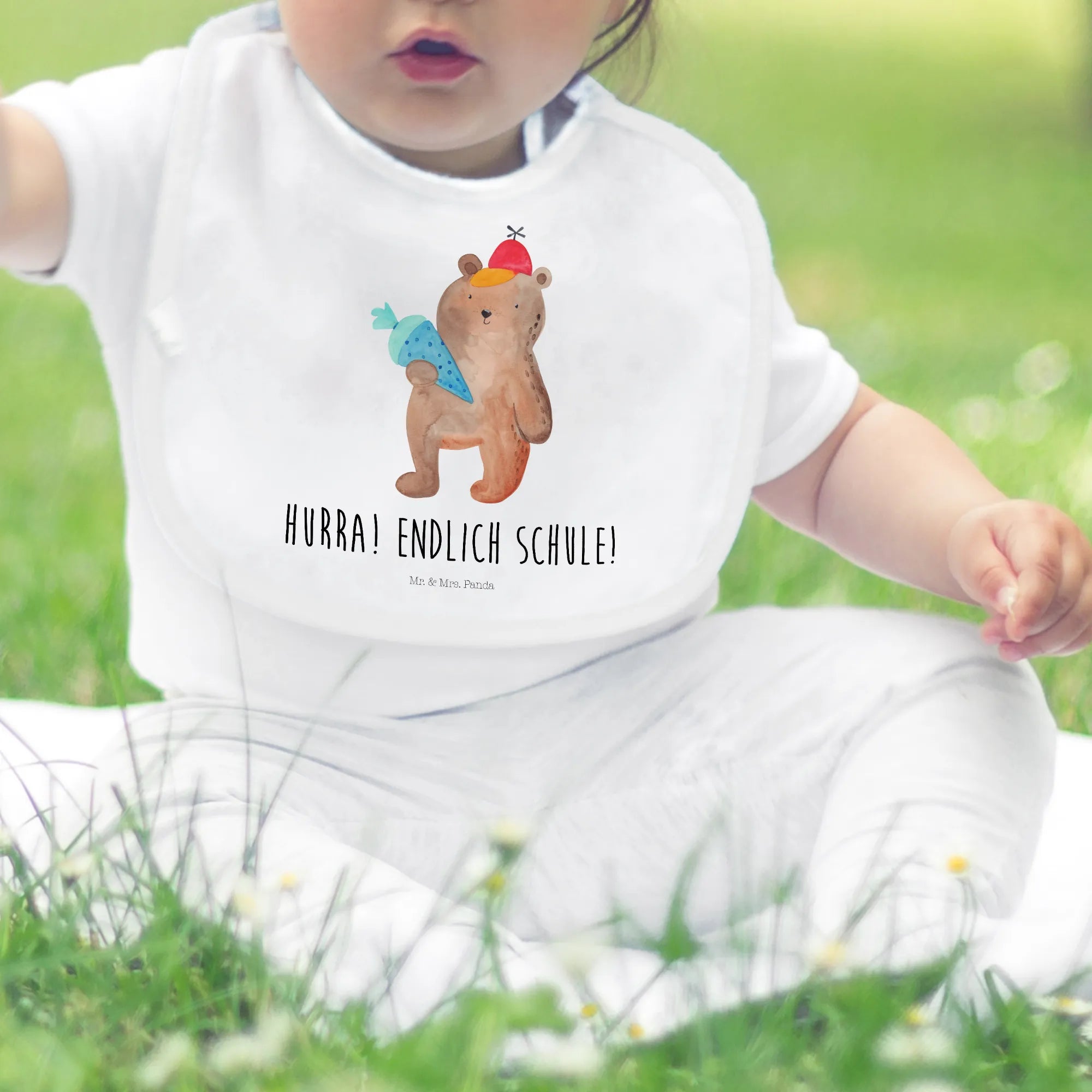 Dieses Spucktuch bietet gleich mehrere Vorteile: Es schützt die Kleidung deines kleinen Schatzes vor Essensflecken und ist gleichzeitig ein einzigartiges Accessoire, das jedes Baby lächeln lässt. Das Design „Hurra! Endlich Schule!“ spricht alle großen und kleinen Bärenfreunde an.