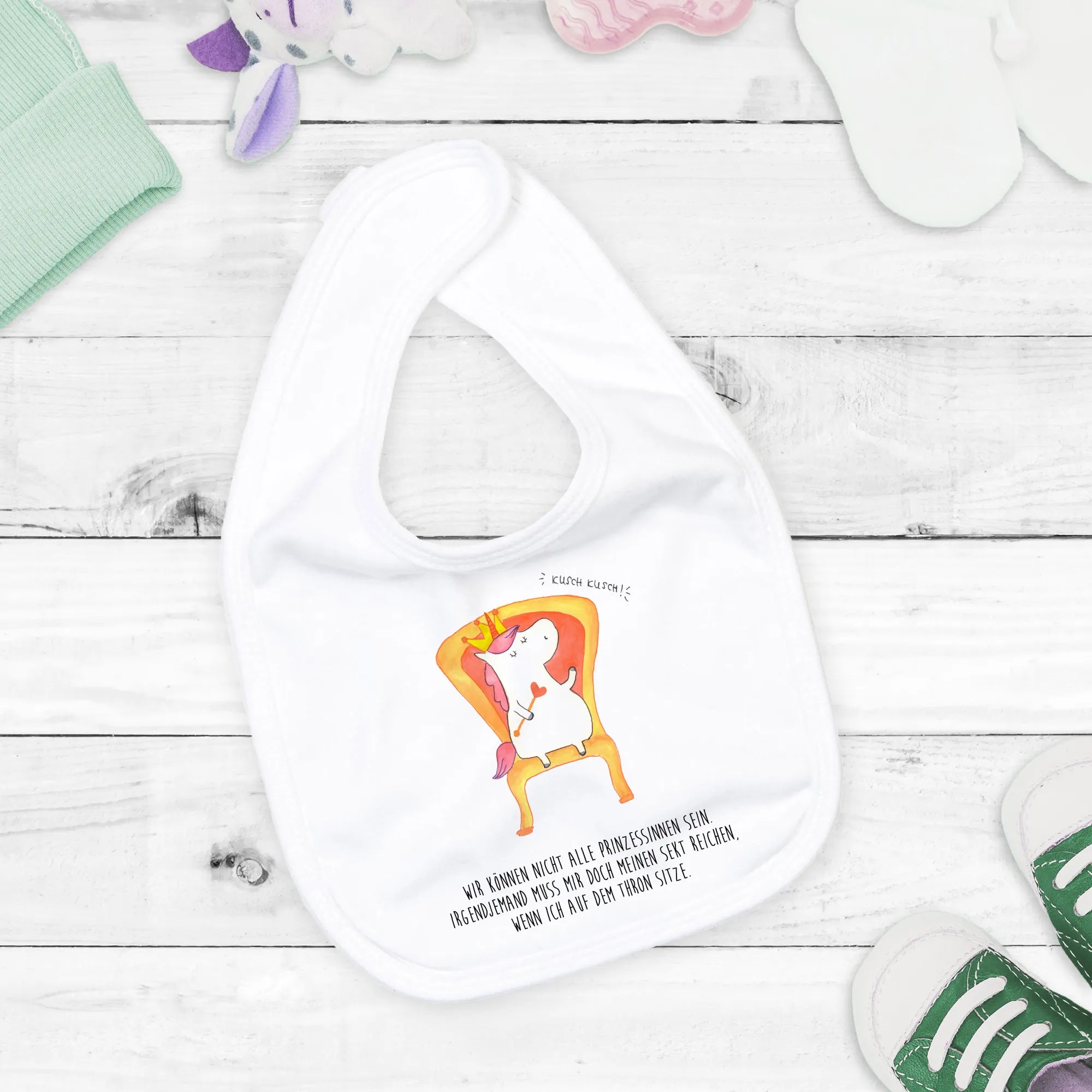 Das Motiv "Einhorn Prinzessin" ist ein wahres Highlight: Es zeigt ein strahlendes Einhorn auf einem Thron, das mit einer Krone geschmückt ist – ganz im Sinne einer richtigen Prinzessin! Dazu kommt der lustige Spruch "Wir können nicht alle Prinzessinnen sein. Irgendjemand muss mir doch meinen Sekt reichen, wenn ich auf dem Thron sitze." Dieser Spruch bringt ein Lächeln und macht das Lätzchen zu einem ganz besonderen Accessoire für eure kleine Prinzessin.