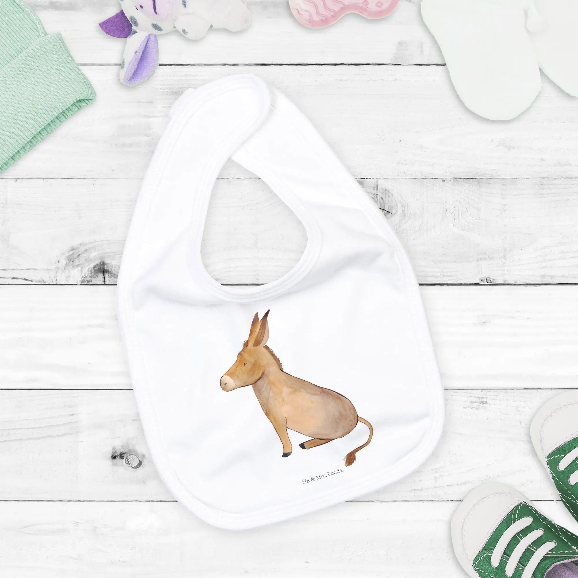 Das Esel-Motiv verkörpert positive Gedanken und Lebensglück und erinnert uns alle daran, dass es wichtig ist, das Leben mit einem Lächeln zu betrachten. Diese kleine Tierwelt inspiriert sowohl Kinder als auch Erwachsene. Wenn Du auf der Suche nach einem besonderen Geschenk zur Geburt bist, das sowohl praktischen Nutzen hat als auch Freude bringt, dann ist dieses Lätzchen genau das Richtige für Dich!