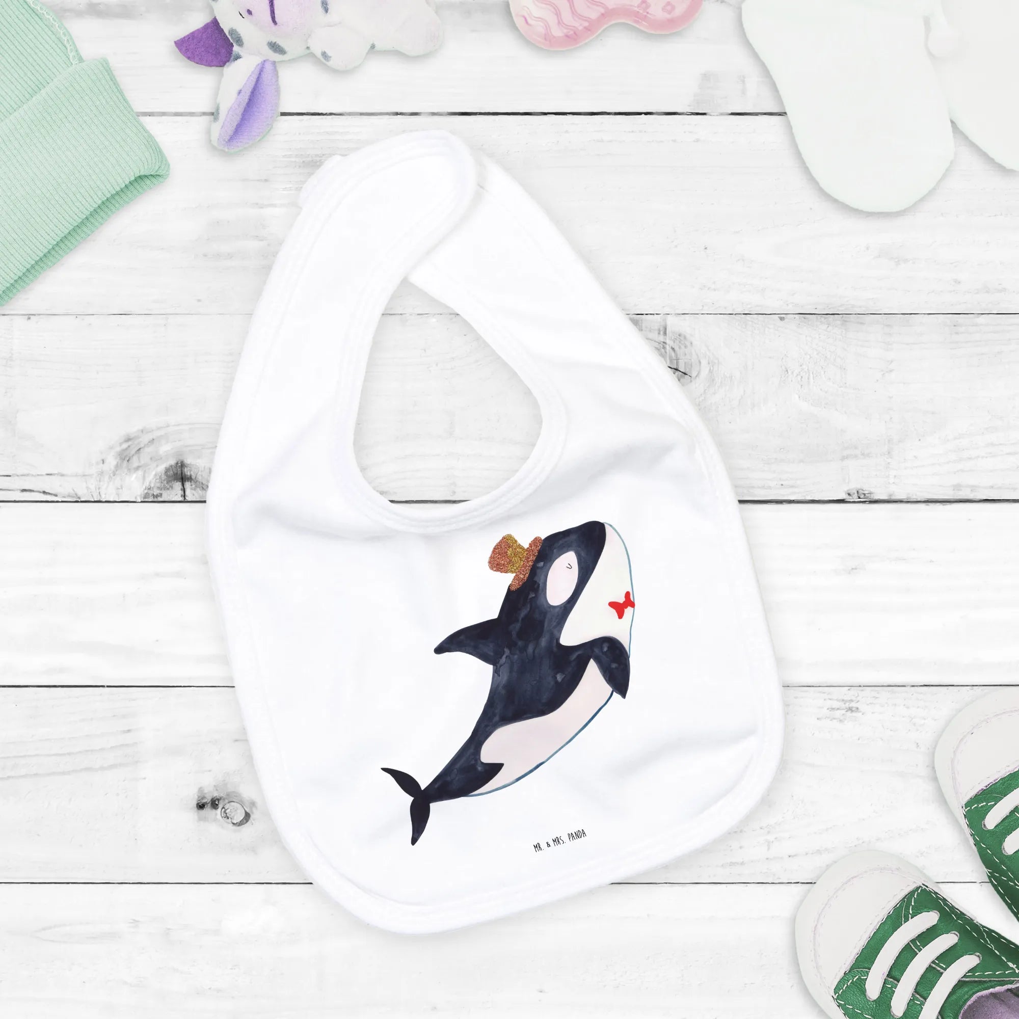 Entdecke das bezaubernde Organic Babylätzchen mit dem einzigartigen Orca-Zylinder-Motiv aus der Meerestiere-Kollektion von Mr. & Mrs. Panda.